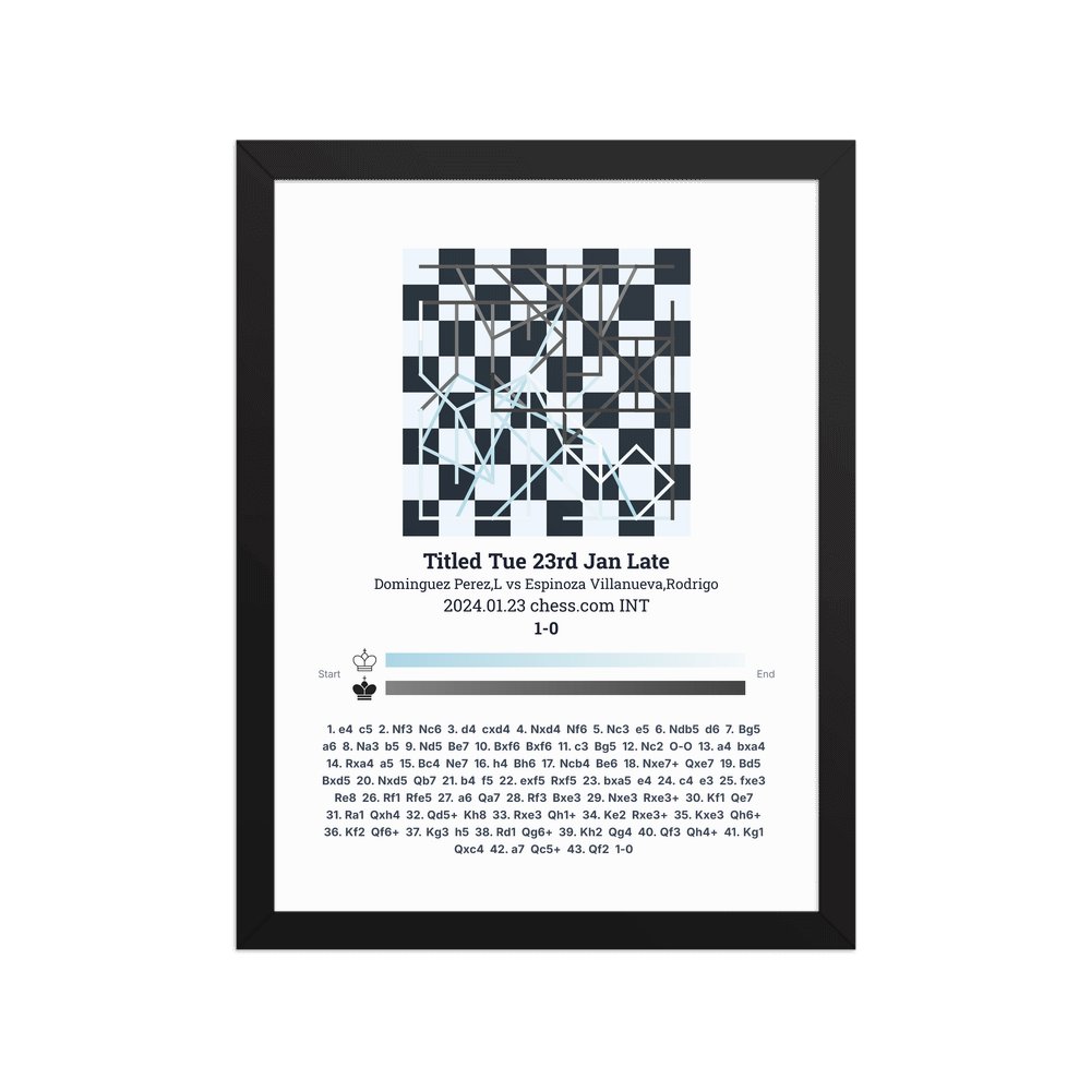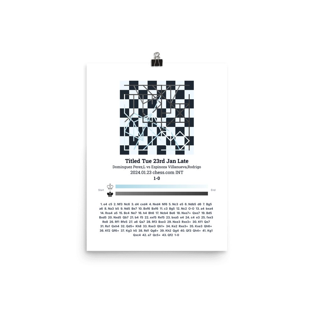 Museum-quality poster on thick, durable matte paper. A sharp, clean look for any chess visualisation.