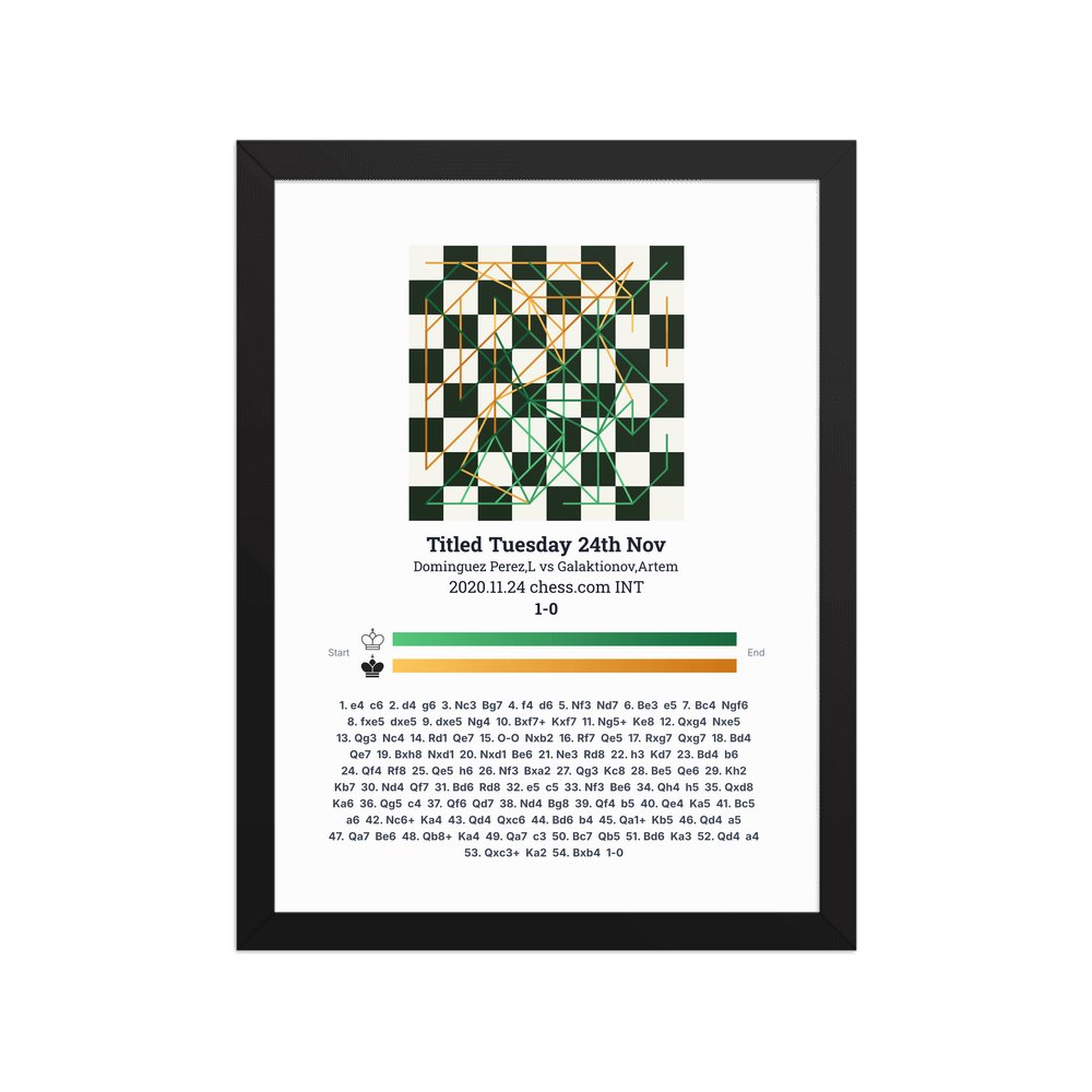 Museum-quality poster on thick, durable matte paper. A sharp, clean look for any chess visualisation.