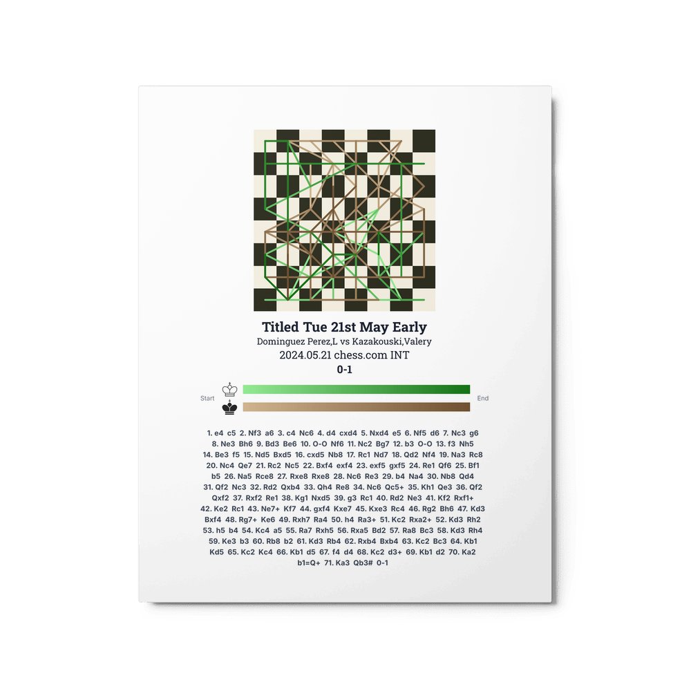 Museum-quality poster on thick, durable matte paper. A sharp, clean look for any chess visualisation.