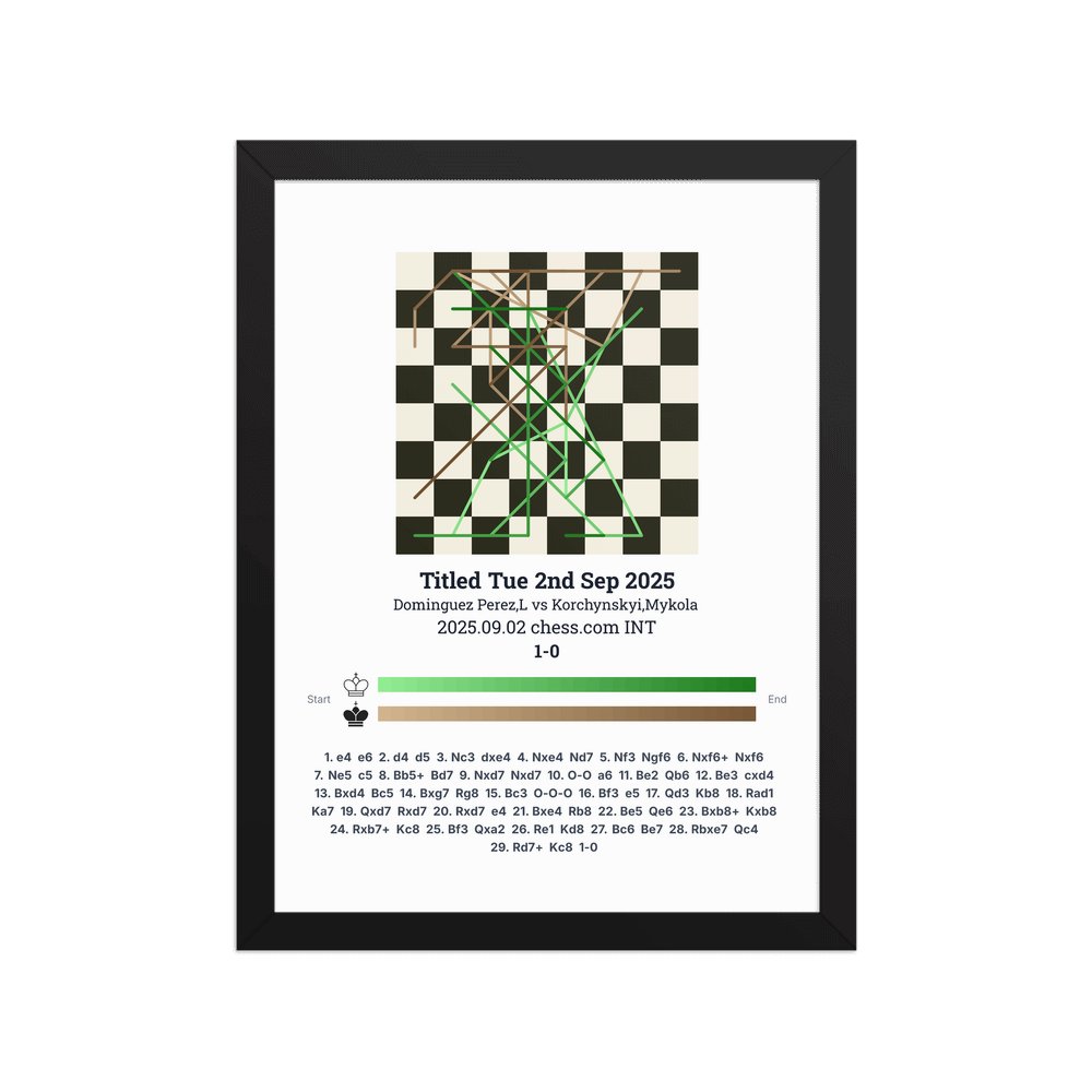 Museum-quality poster on thick, durable matte paper. A sharp, clean look for any chess visualisation.