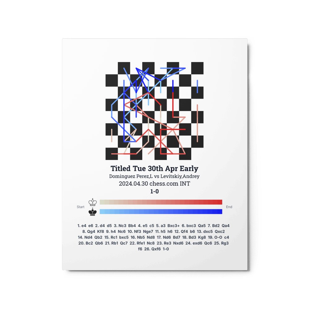Museum-quality poster on thick, durable matte paper. A sharp, clean look for any chess visualisation.