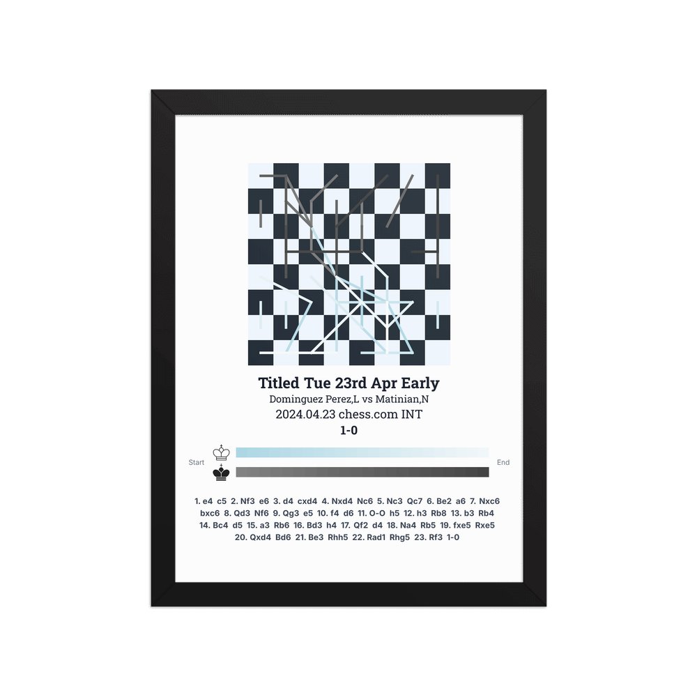 Museum-quality poster on thick, durable matte paper. A sharp, clean look for any chess visualisation.