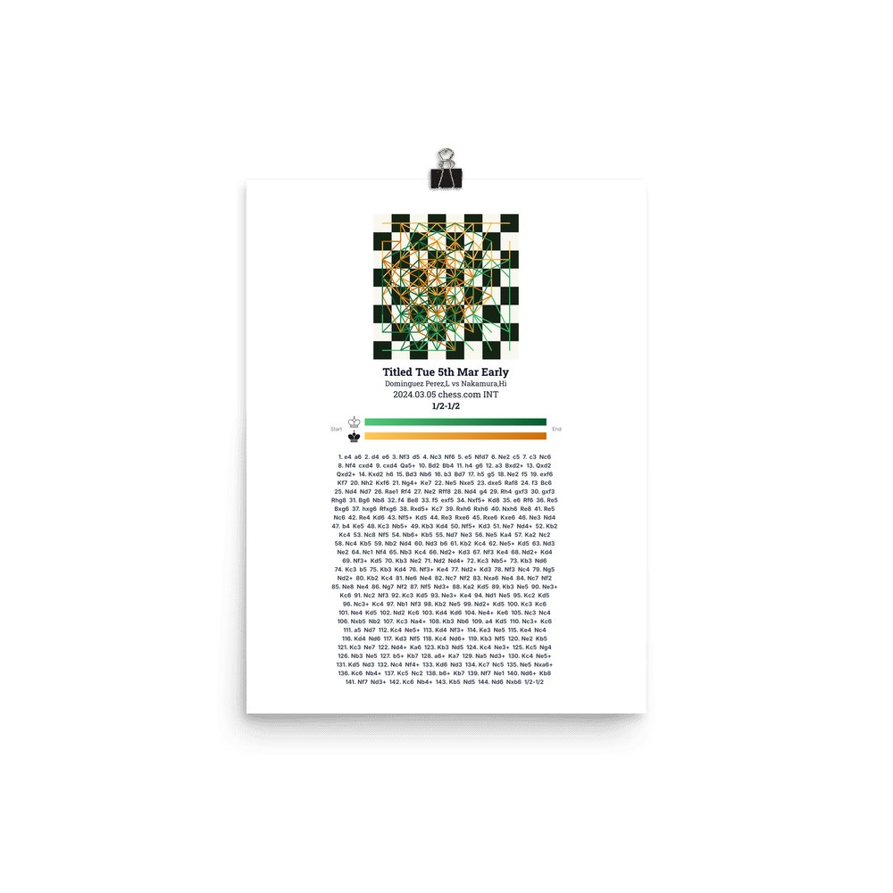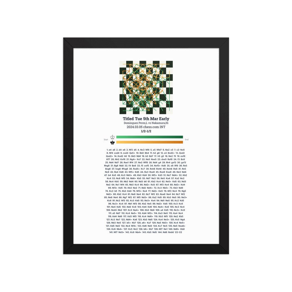 Museum-quality poster on thick, durable matte paper. A sharp, clean look for any chess visualisation.