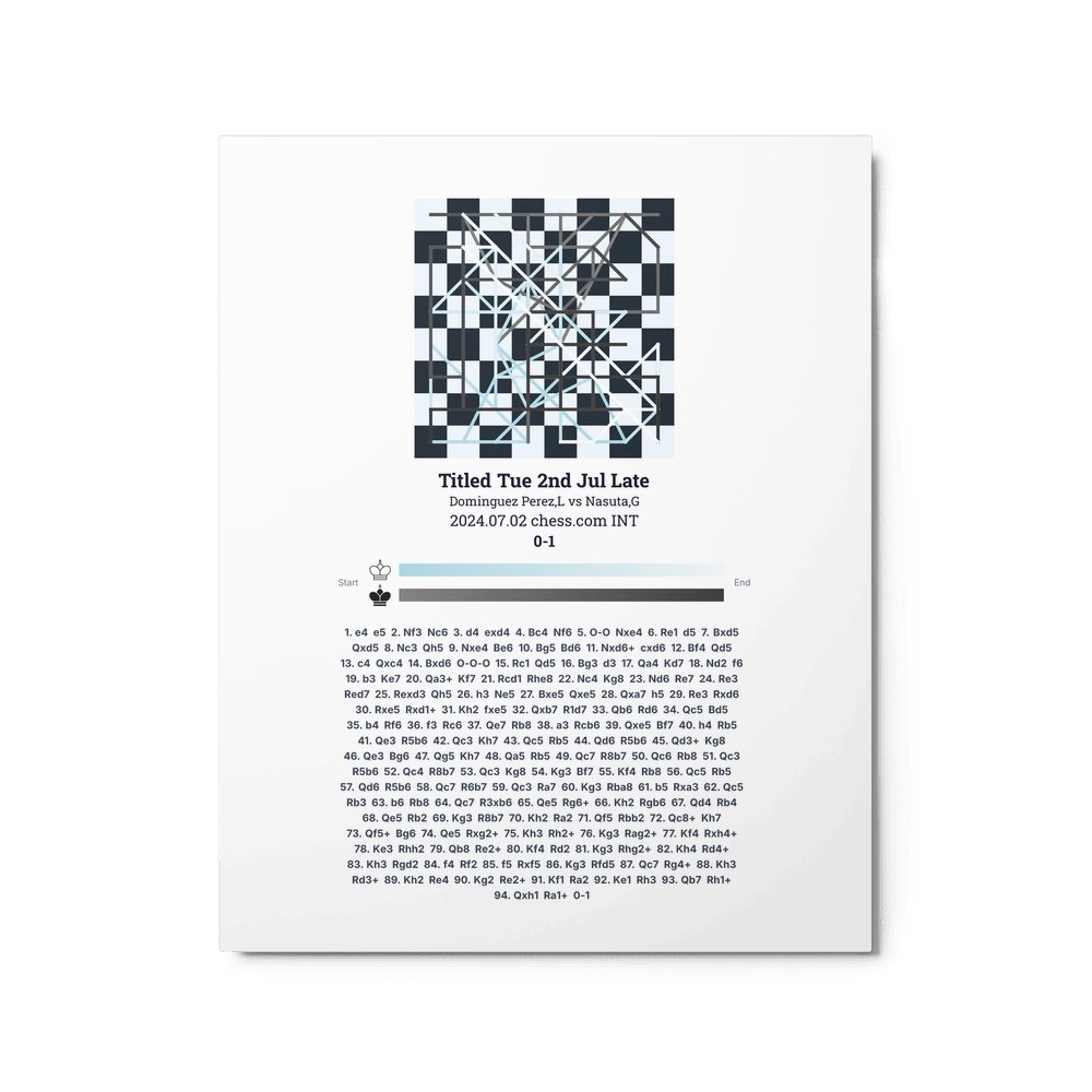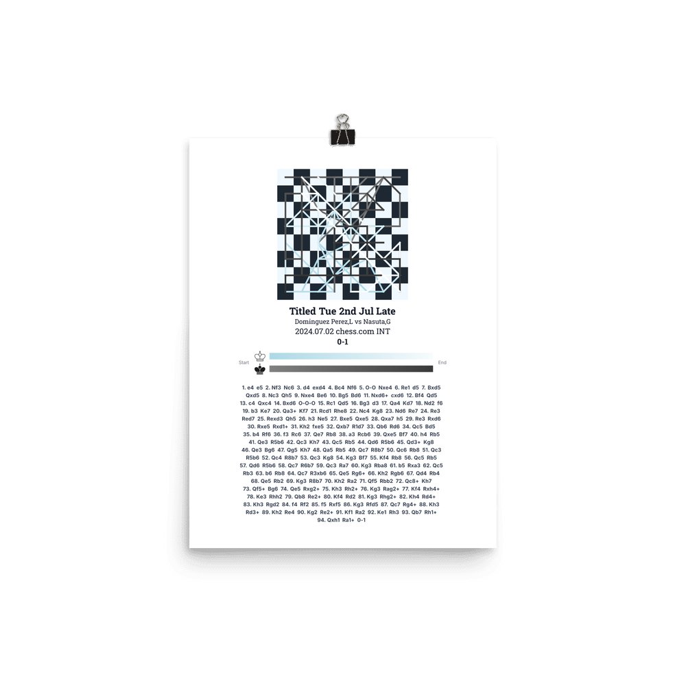 Museum-quality poster on thick, durable matte paper. A sharp, clean look for any chess visualisation.