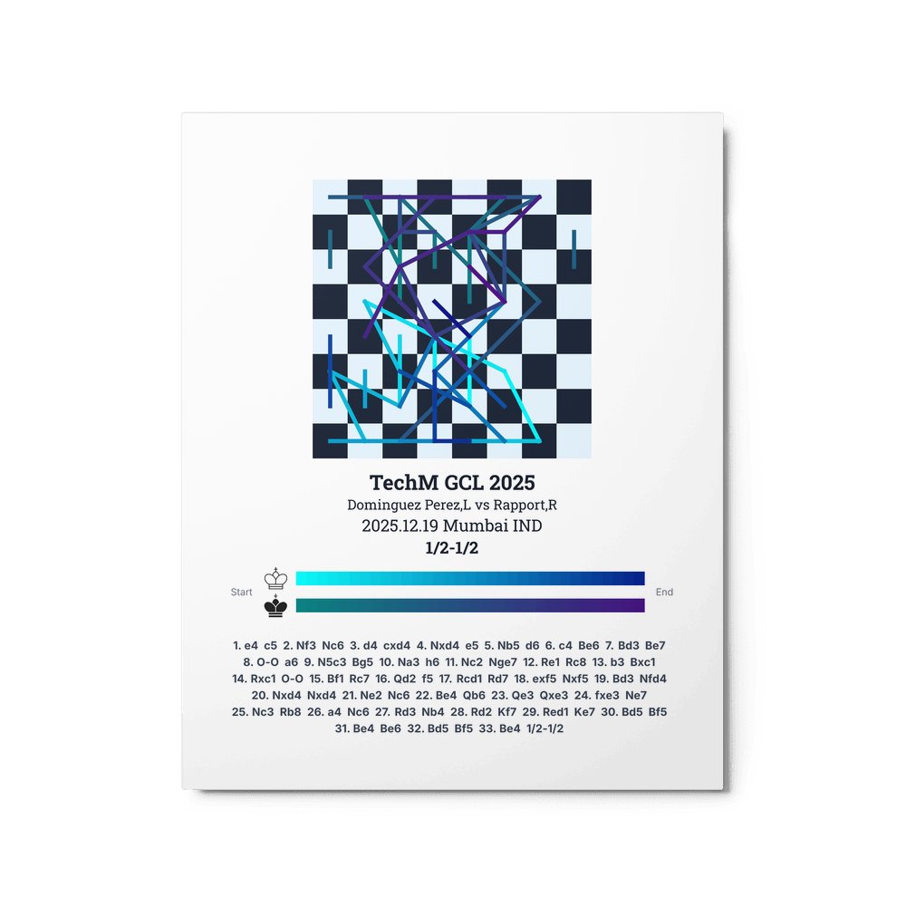 Museum-quality poster on thick, durable matte paper. A sharp, clean look for any chess visualisation.