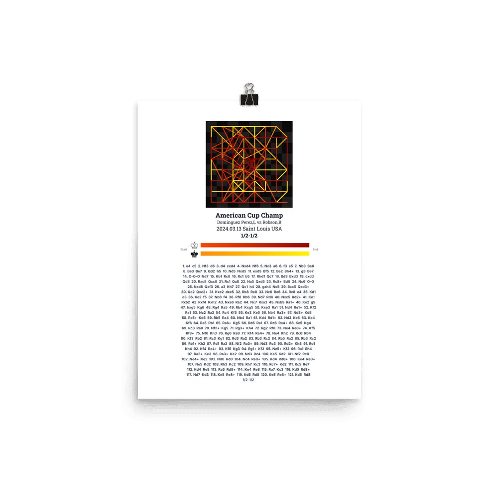 Museum-quality poster on thick, durable matte paper. A sharp, clean look for any chess visualisation.