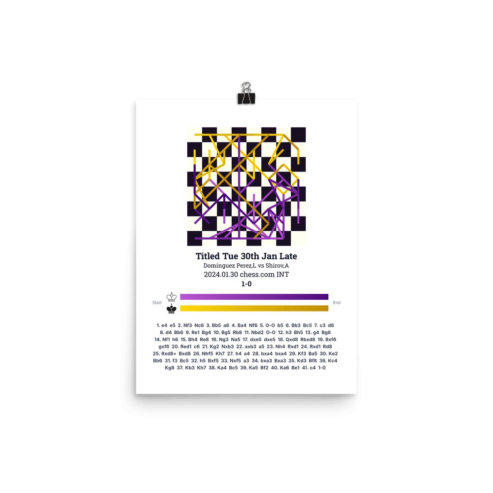 Museum-quality poster on thick, durable matte paper. A sharp, clean look for any chess visualisation.