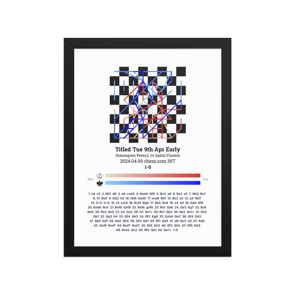 Museum-quality poster on thick, durable matte paper. A sharp, clean look for any chess visualisation.