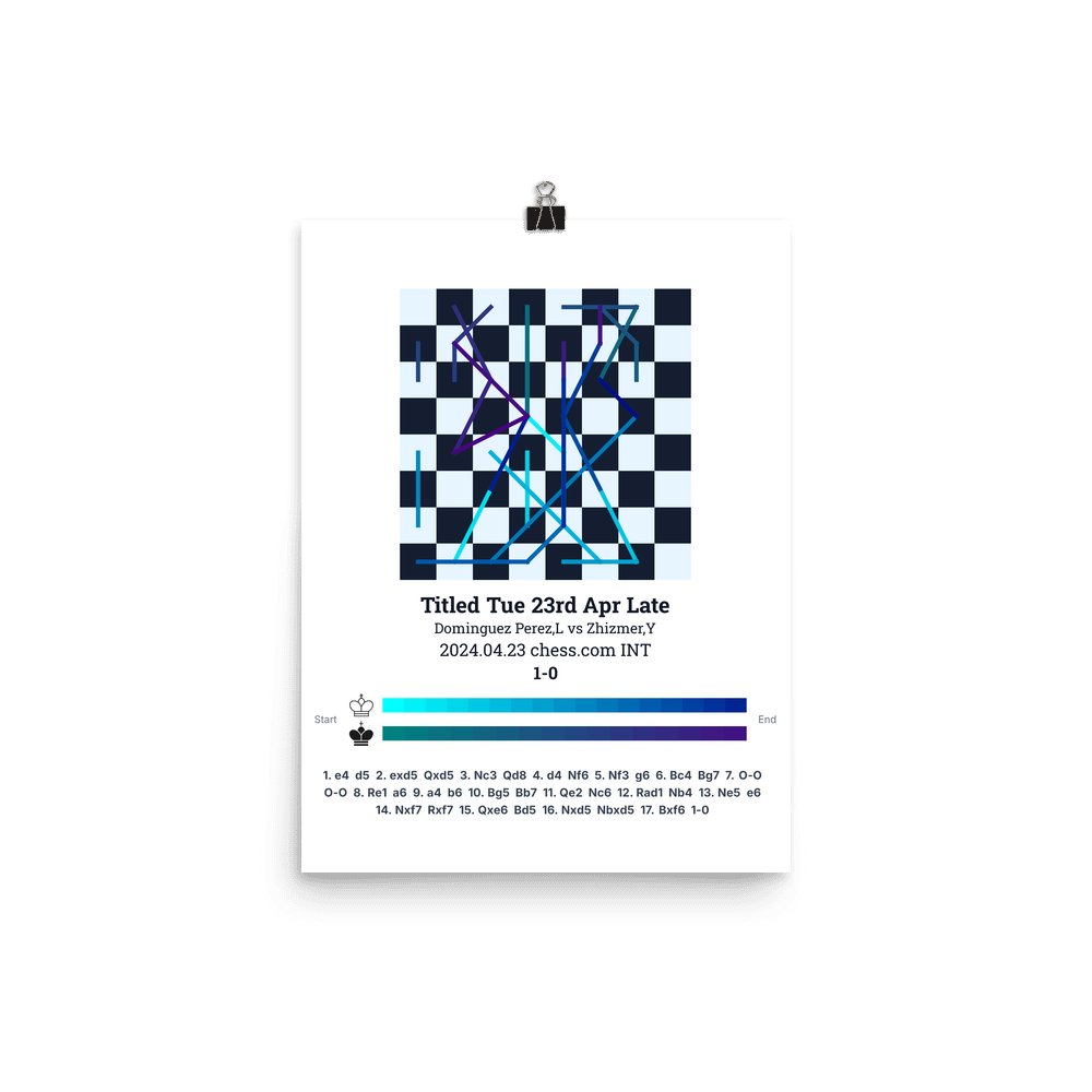Museum-quality poster on thick, durable matte paper. A sharp, clean look for any chess visualisation.