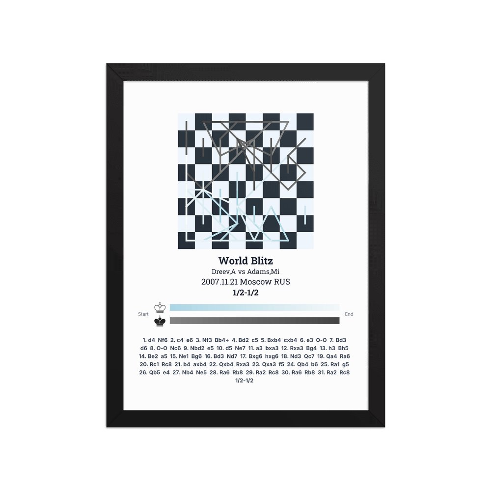 Museum-quality poster on thick, durable matte paper. A sharp, clean look for any chess visualisation.