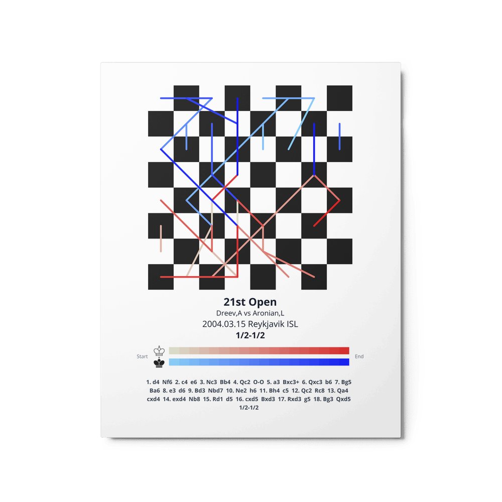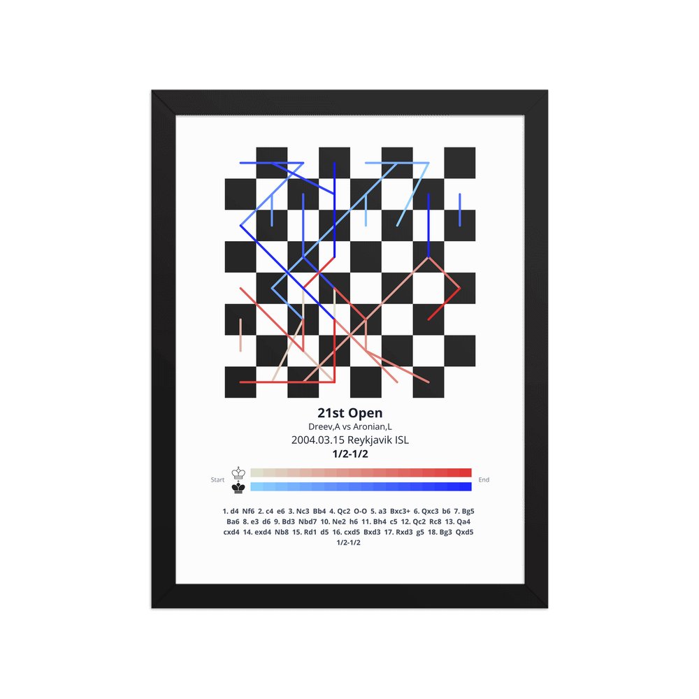 Museum-quality poster on thick, durable matte paper. A sharp, clean look for any chess visualisation.
