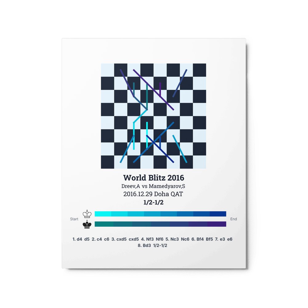 Museum-quality poster on thick, durable matte paper. A sharp, clean look for any chess visualisation.