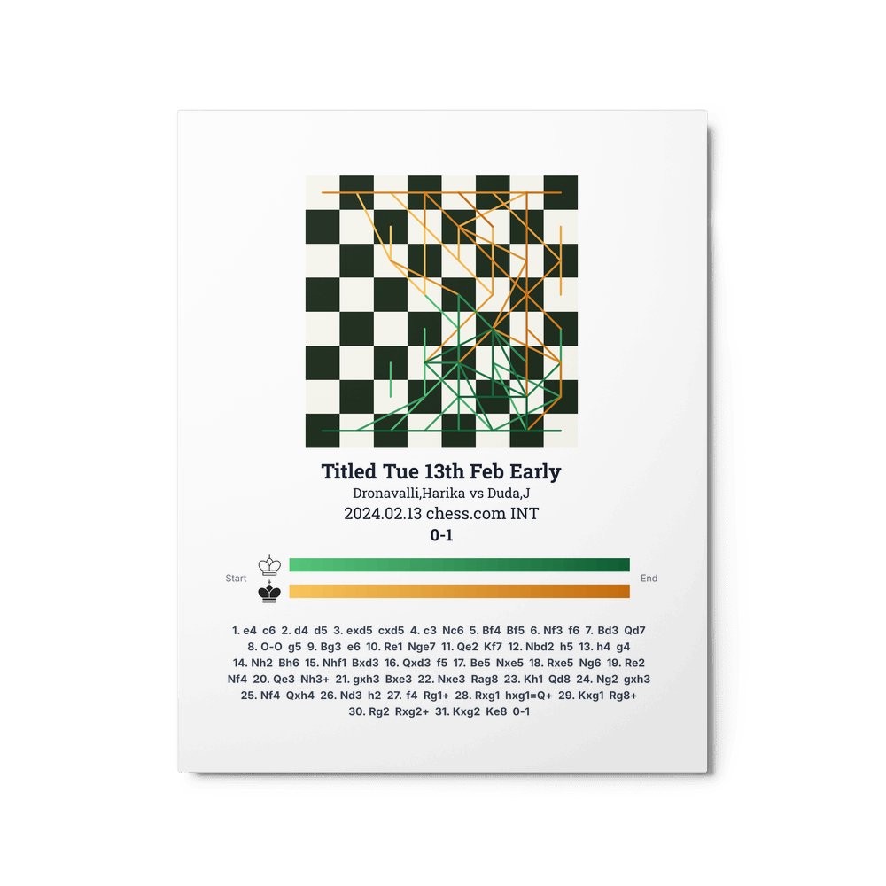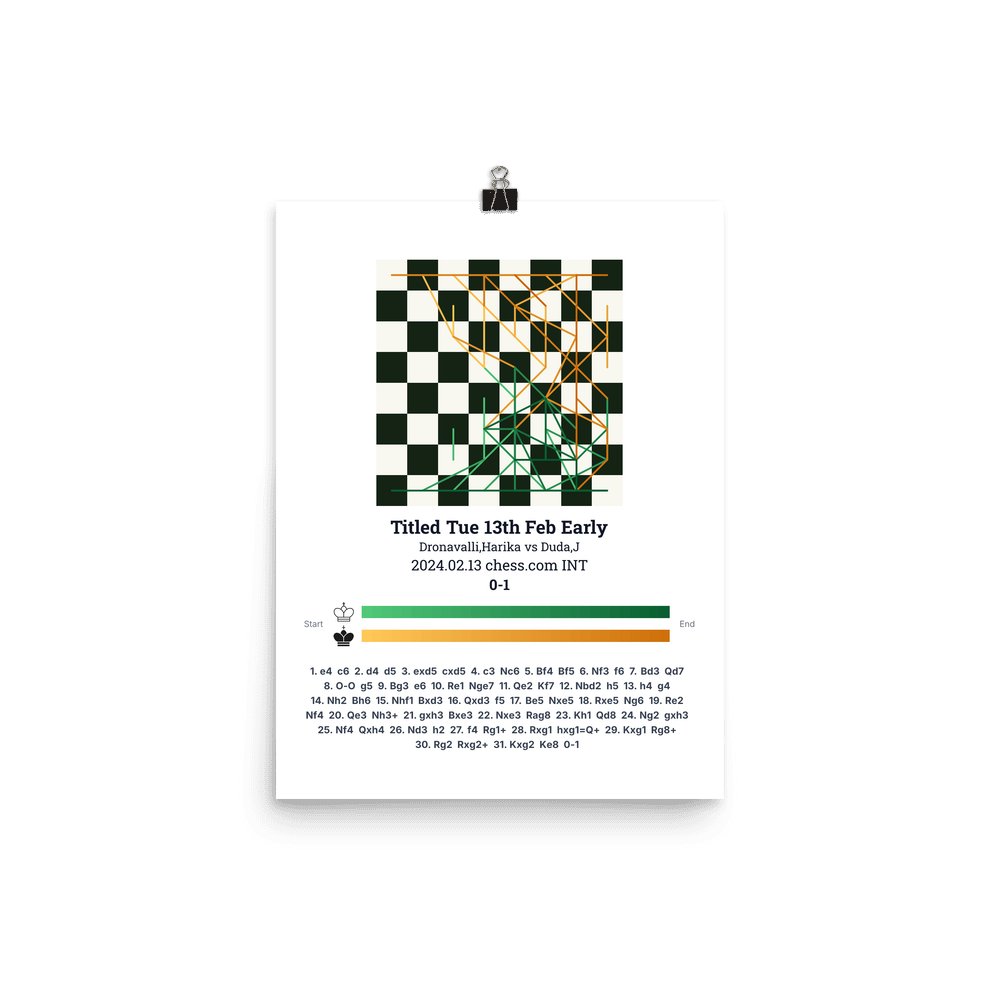 Museum-quality poster on thick, durable matte paper. A sharp, clean look for any chess visualisation.