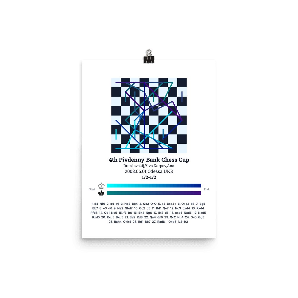 Museum-quality poster on thick, durable matte paper. A sharp, clean look for any chess visualisation.