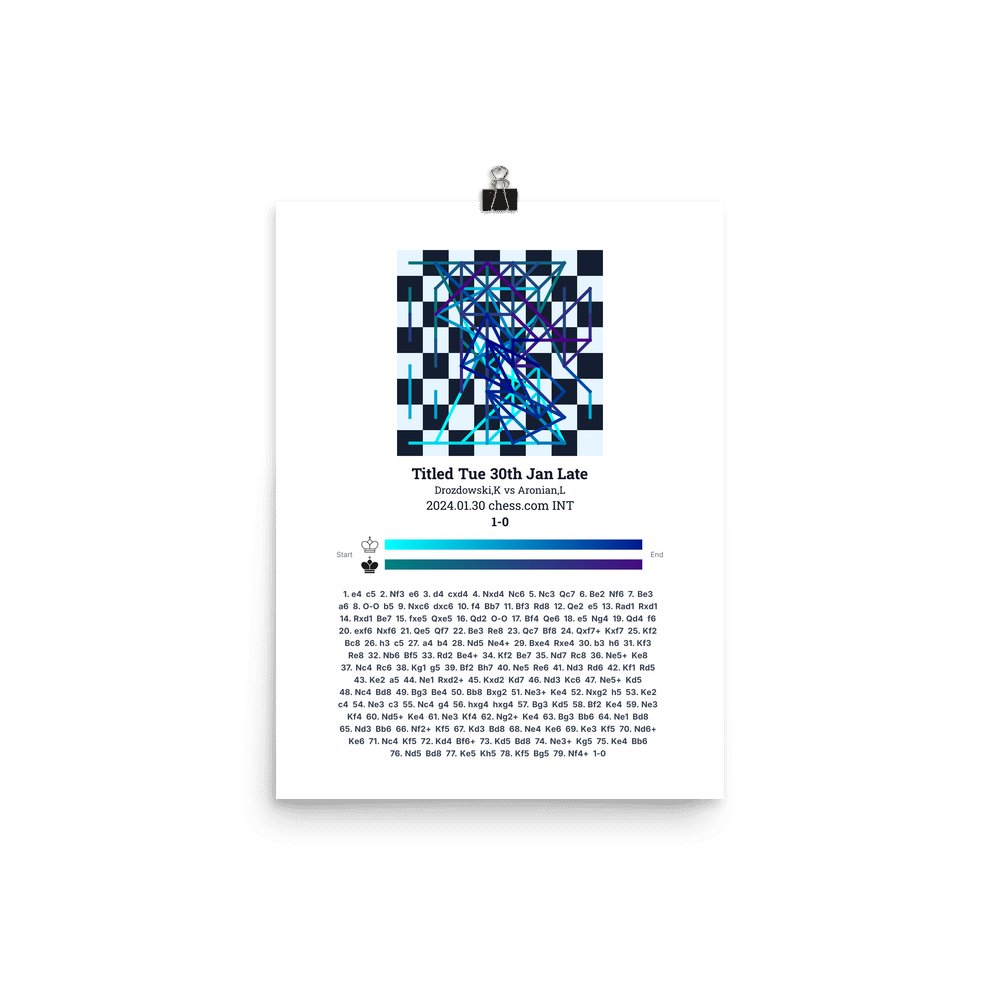 Museum-quality poster on thick, durable matte paper. A sharp, clean look for any chess visualisation.