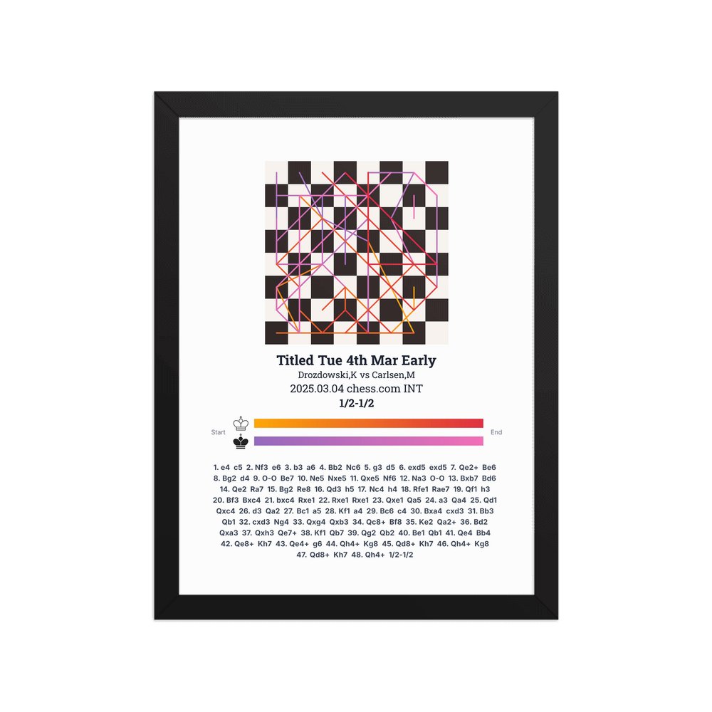 Museum-quality poster on thick, durable matte paper. A sharp, clean look for any chess visualisation.