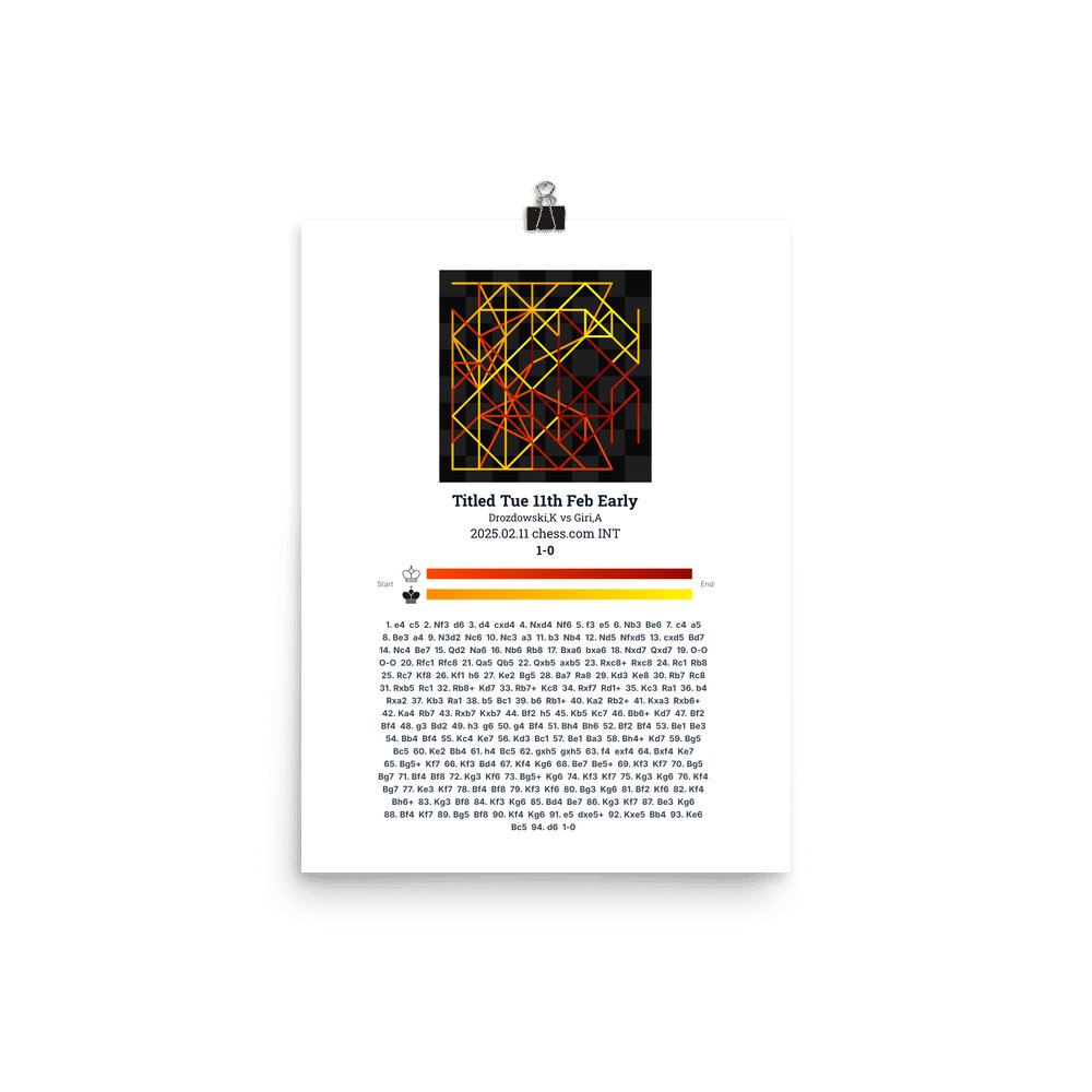 Museum-quality poster on thick, durable matte paper. A sharp, clean look for any chess visualisation.