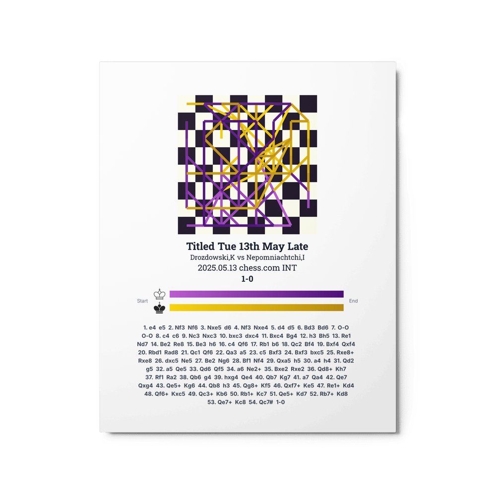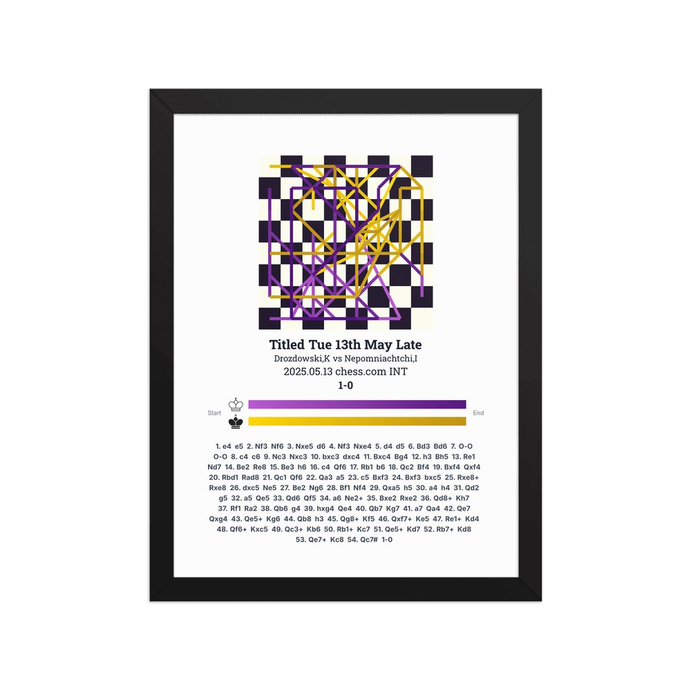 Museum-quality poster on thick, durable matte paper. A sharp, clean look for any chess visualisation.