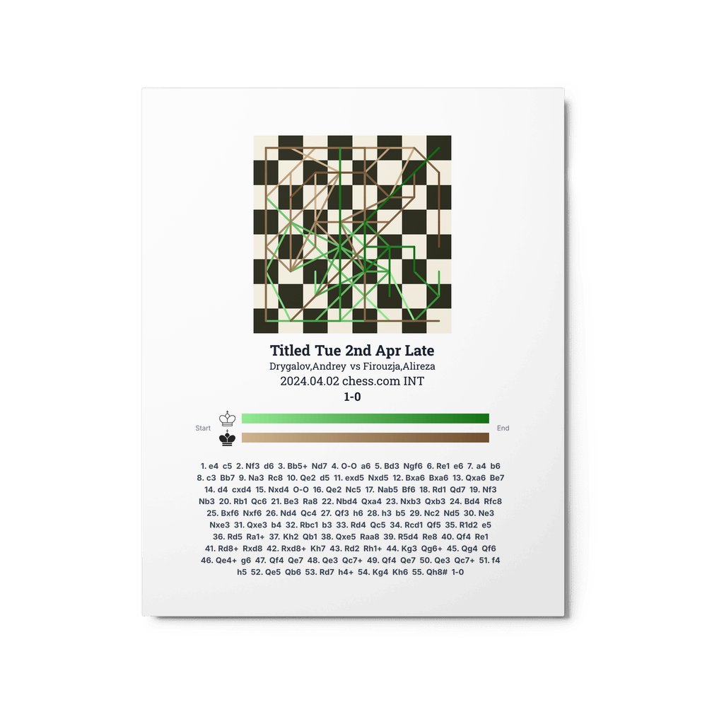 Museum-quality poster on thick, durable matte paper. A sharp, clean look for any chess visualisation.