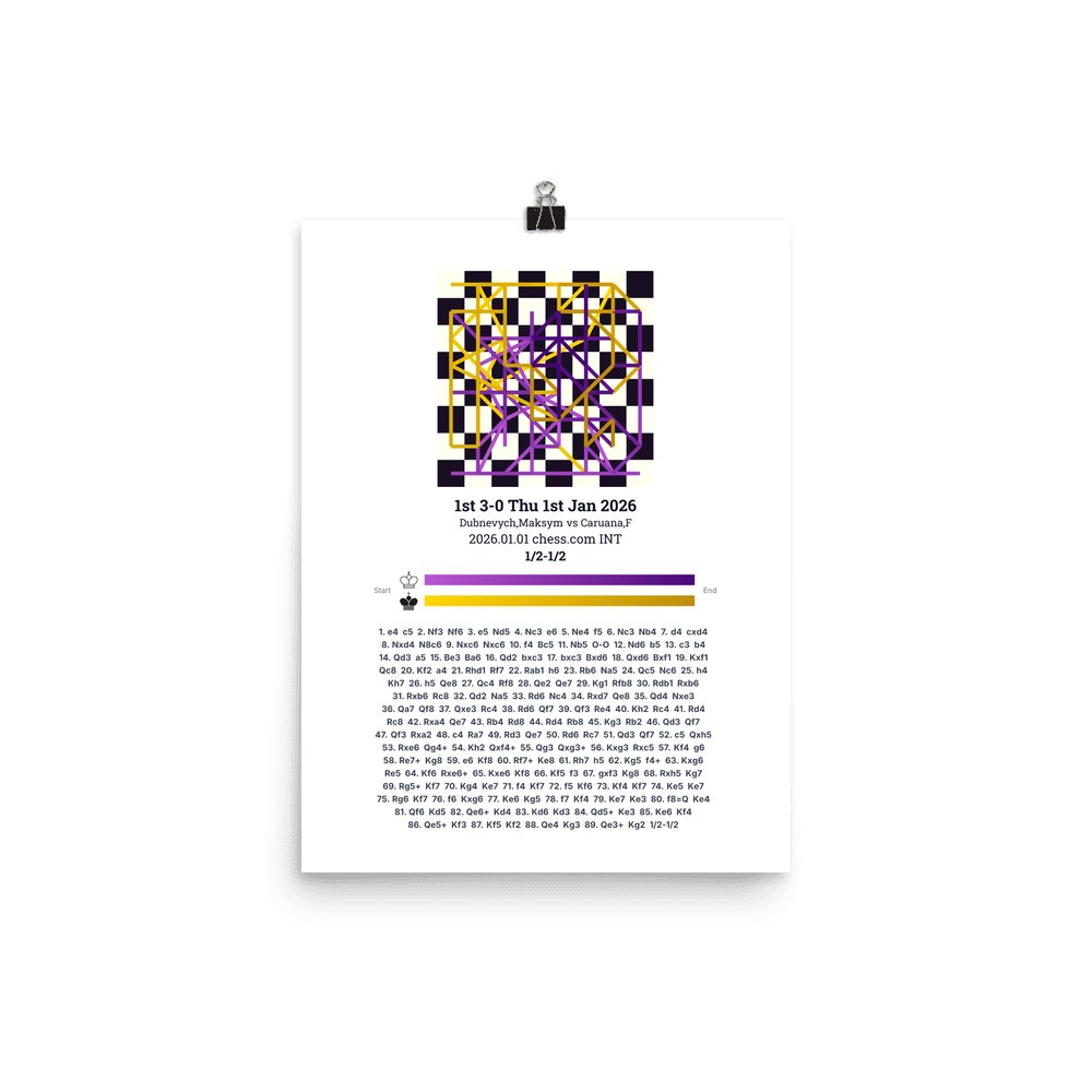 Museum-quality poster on thick, durable matte paper. A sharp, clean look for any chess visualisation.