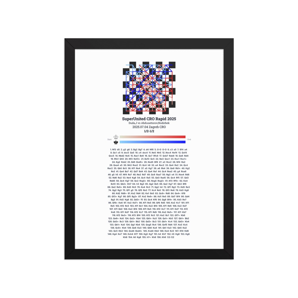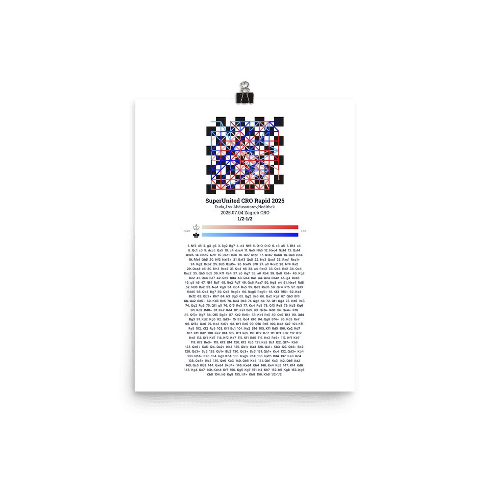 Museum-quality poster on thick, durable matte paper. A sharp, clean look for any chess visualisation.
