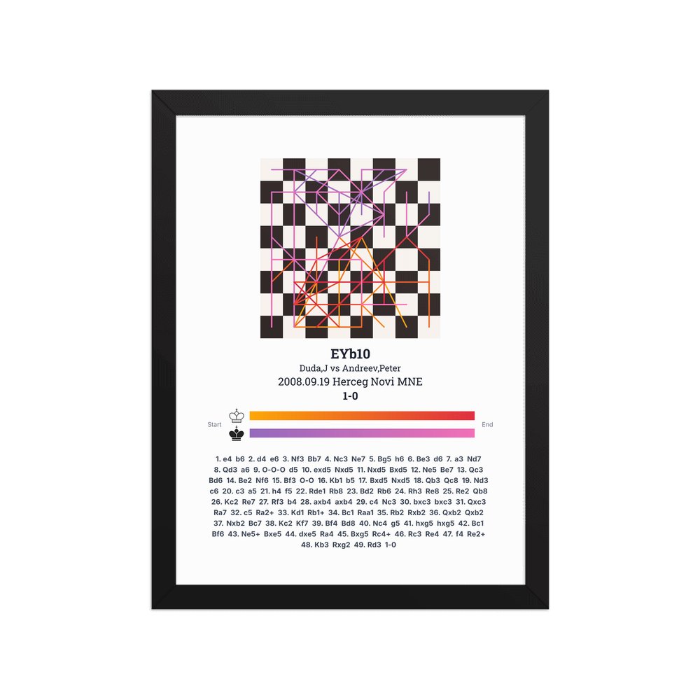 Museum-quality poster on thick, durable matte paper. A sharp, clean look for any chess visualisation.