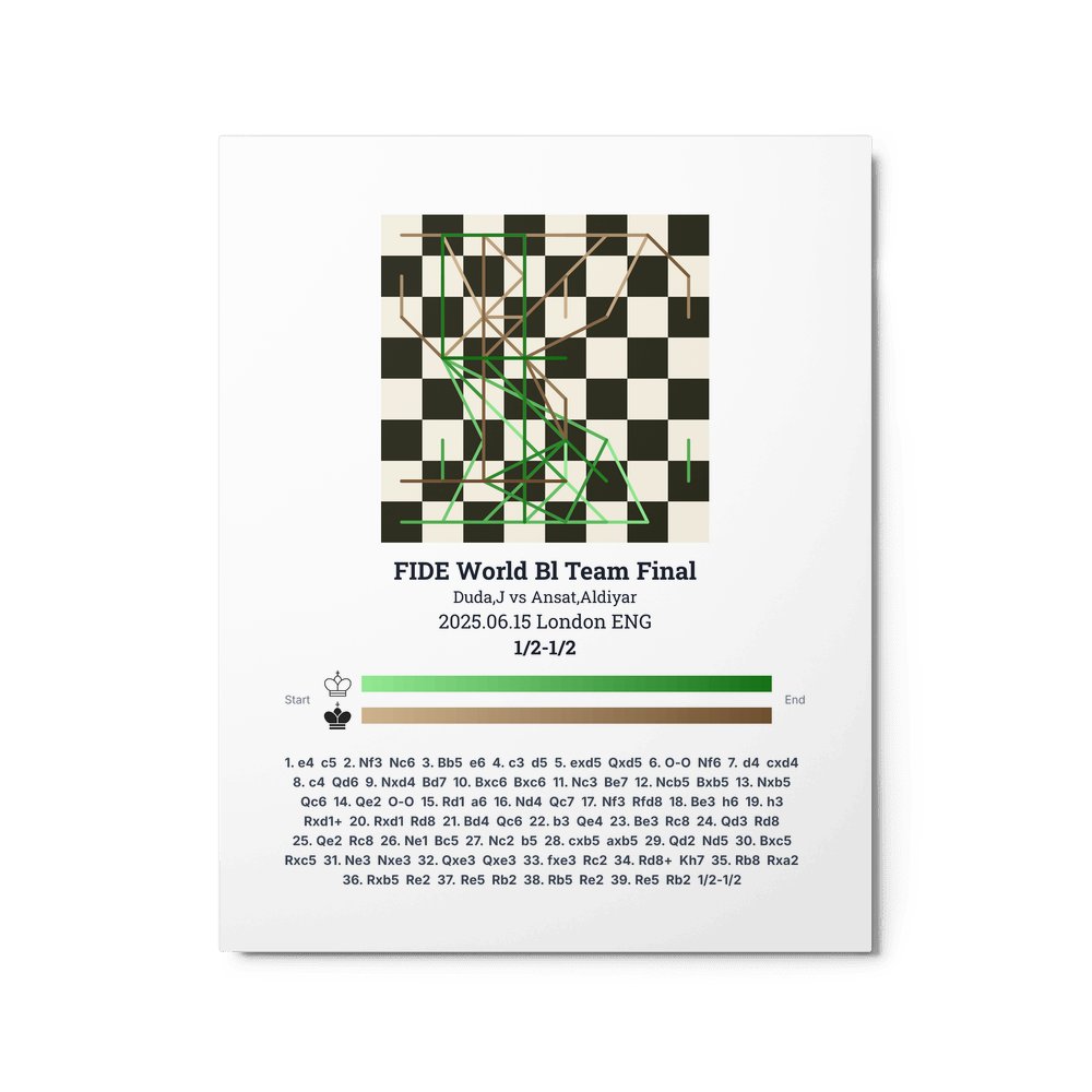 Museum-quality poster on thick, durable matte paper. A sharp, clean look for any chess visualisation.