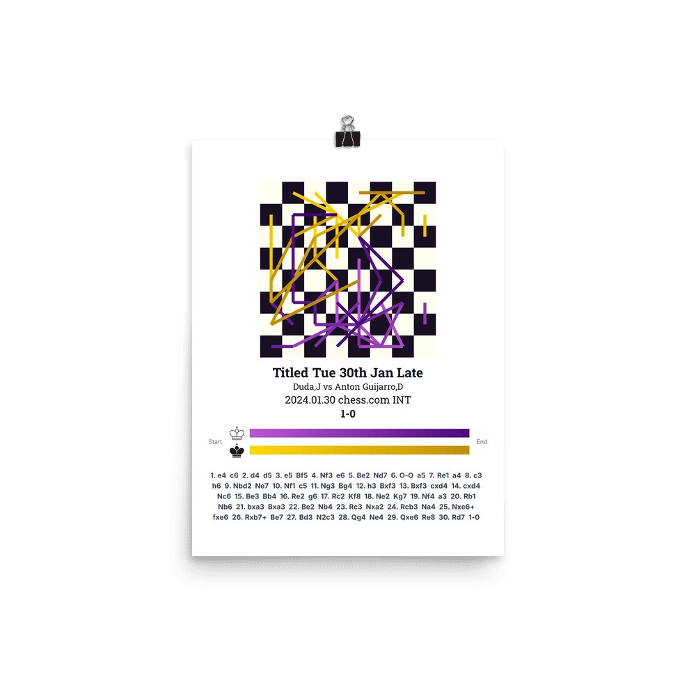 Museum-quality poster on thick, durable matte paper. A sharp, clean look for any chess visualisation.