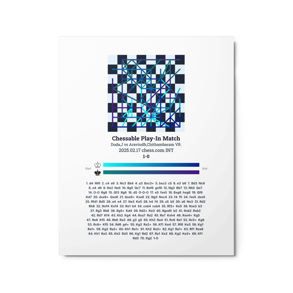 Museum-quality poster on thick, durable matte paper. A sharp, clean look for any chess visualisation.