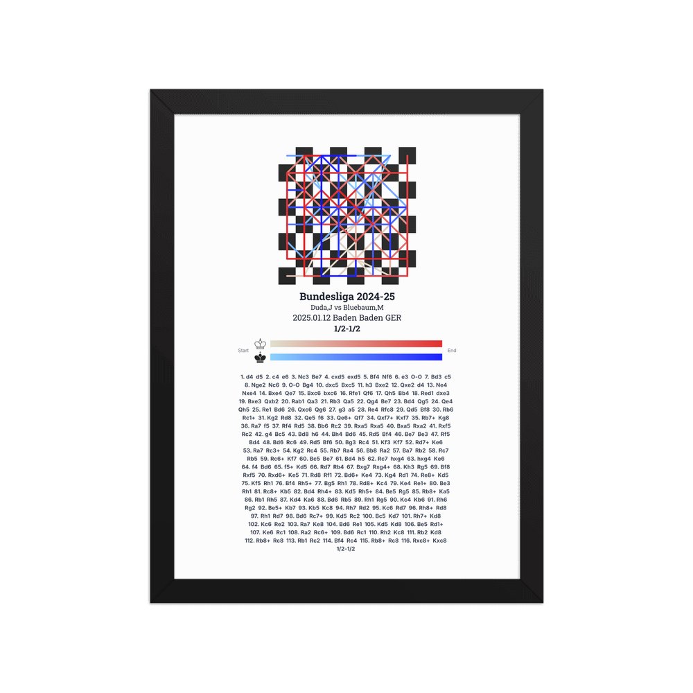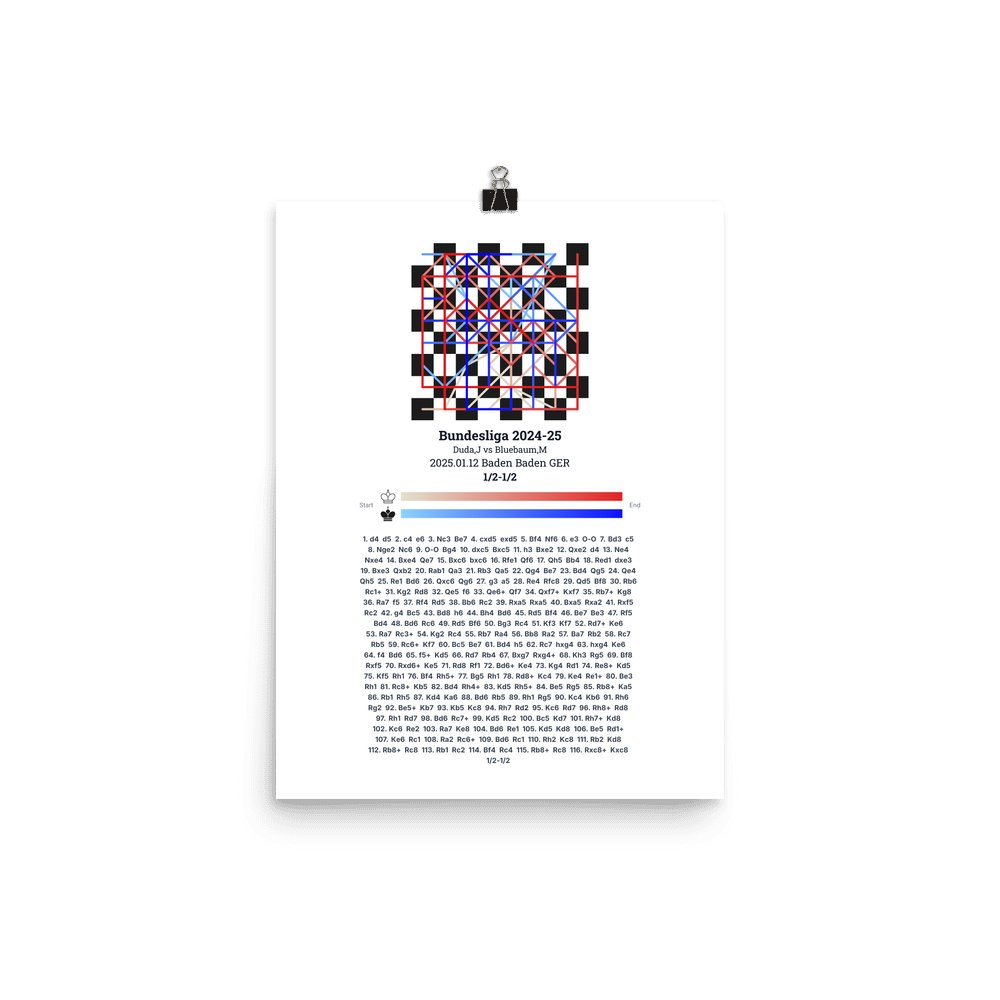 Museum-quality poster on thick, durable matte paper. A sharp, clean look for any chess visualisation.