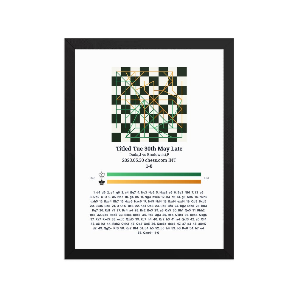 Museum-quality poster on thick, durable matte paper. A sharp, clean look for any chess visualisation.