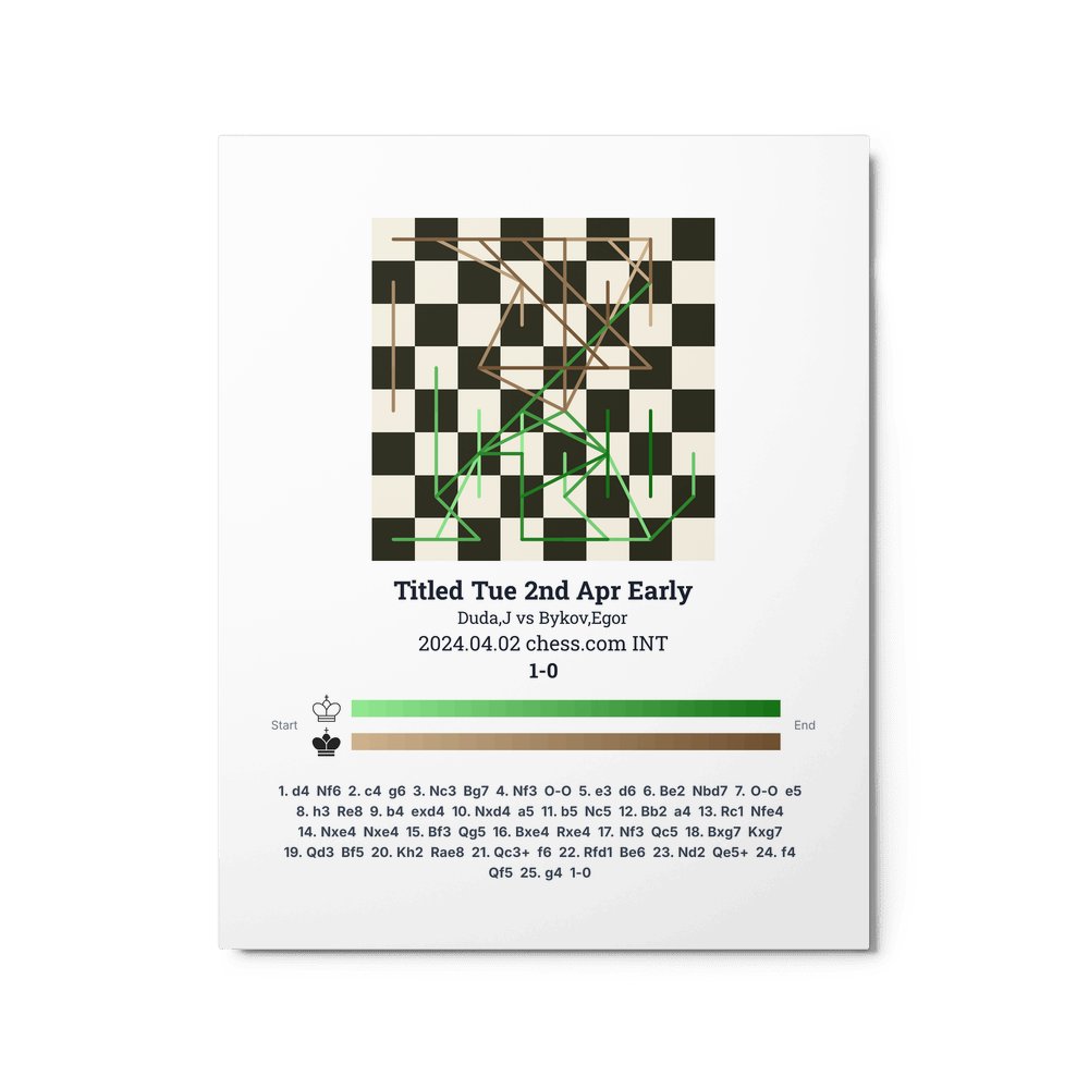 Museum-quality poster on thick, durable matte paper. A sharp, clean look for any chess visualisation.