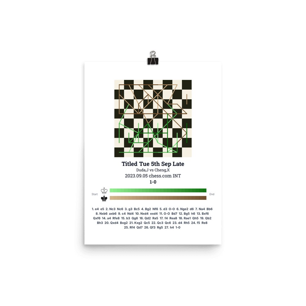 Museum-quality poster on thick, durable matte paper. A sharp, clean look for any chess visualisation.