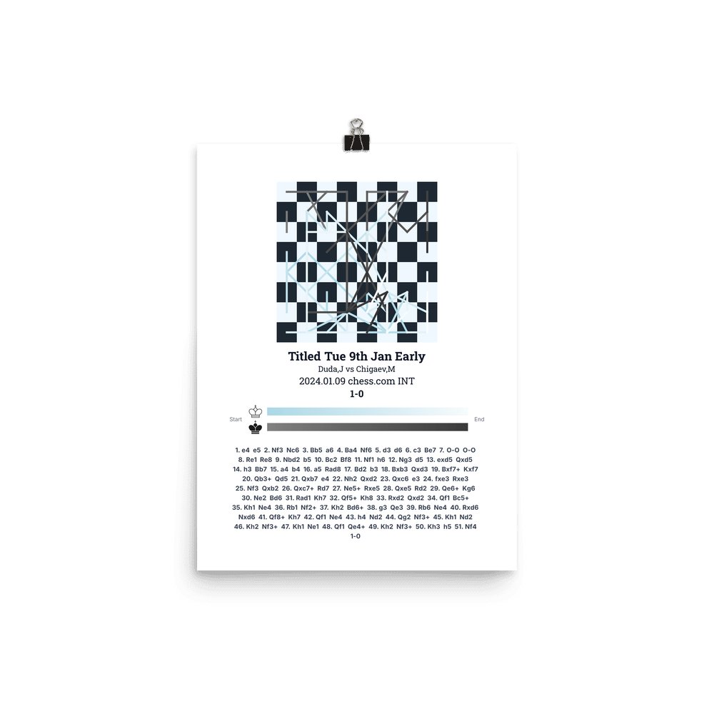 Museum-quality poster on thick, durable matte paper. A sharp, clean look for any chess visualisation.