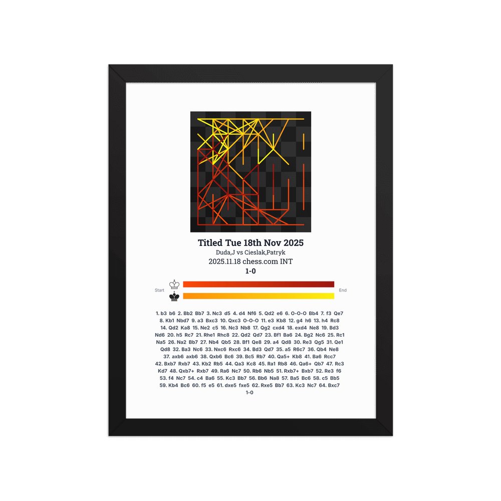 Museum-quality poster on thick, durable matte paper. A sharp, clean look for any chess visualisation.