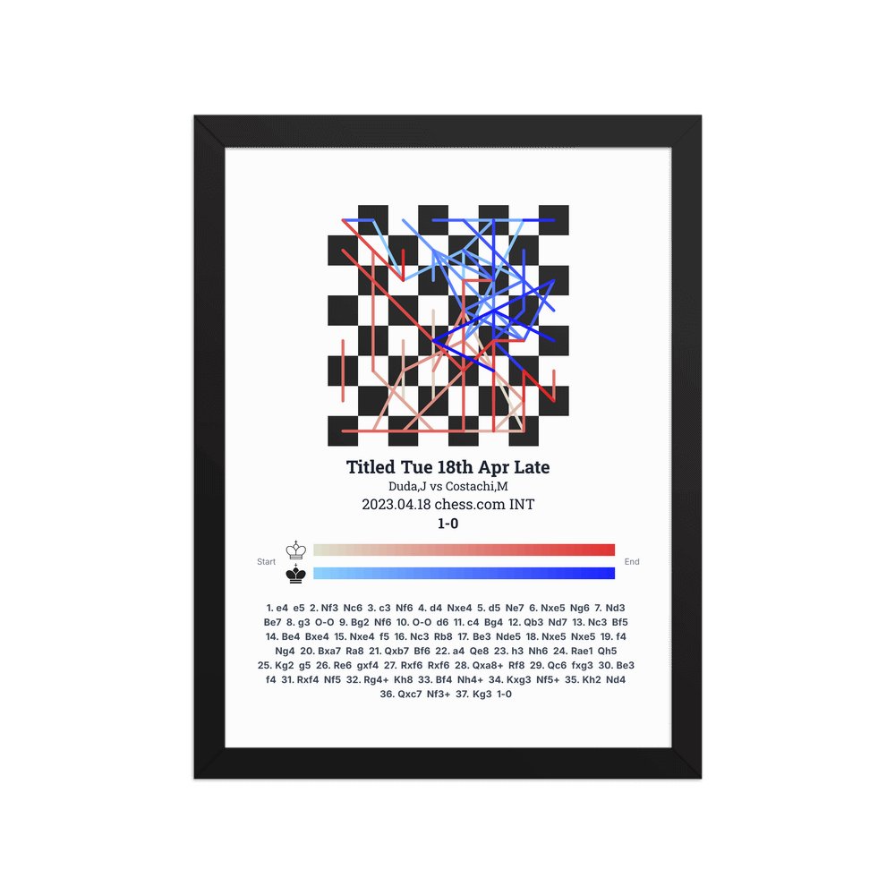 Museum-quality poster on thick, durable matte paper. A sharp, clean look for any chess visualisation.