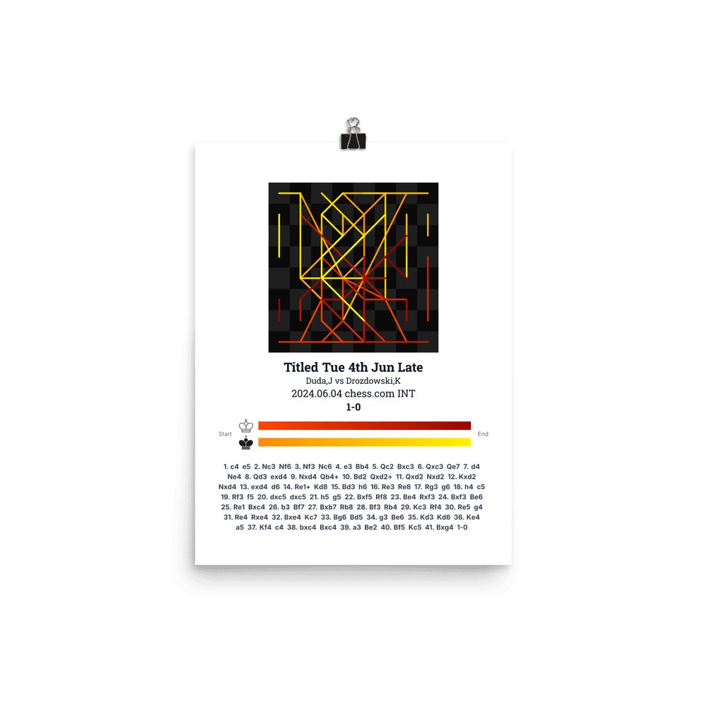 Museum-quality poster on thick, durable matte paper. A sharp, clean look for any chess visualisation.