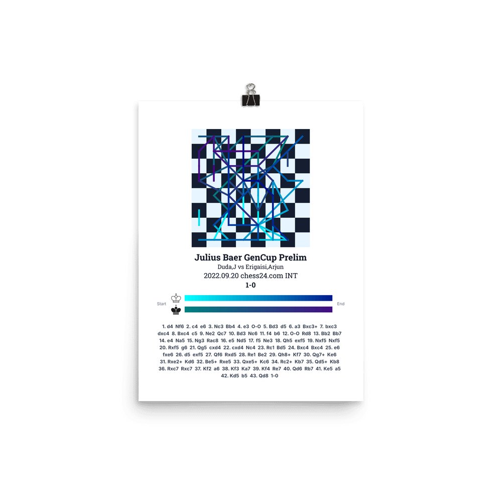 Museum-quality poster on thick, durable matte paper. A sharp, clean look for any chess visualisation.
