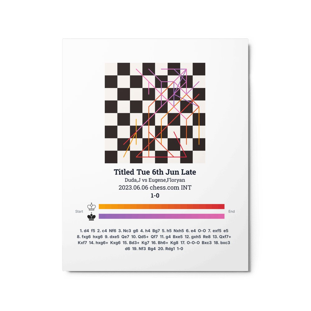 Museum-quality poster on thick, durable matte paper. A sharp, clean look for any chess visualisation.