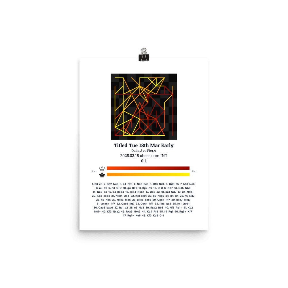 Museum-quality poster on thick, durable matte paper. A sharp, clean look for any chess visualisation.