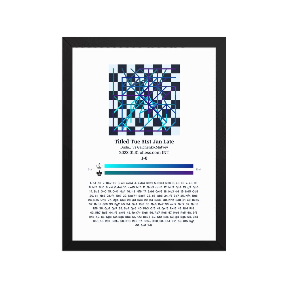 Museum-quality poster on thick, durable matte paper. A sharp, clean look for any chess visualisation.