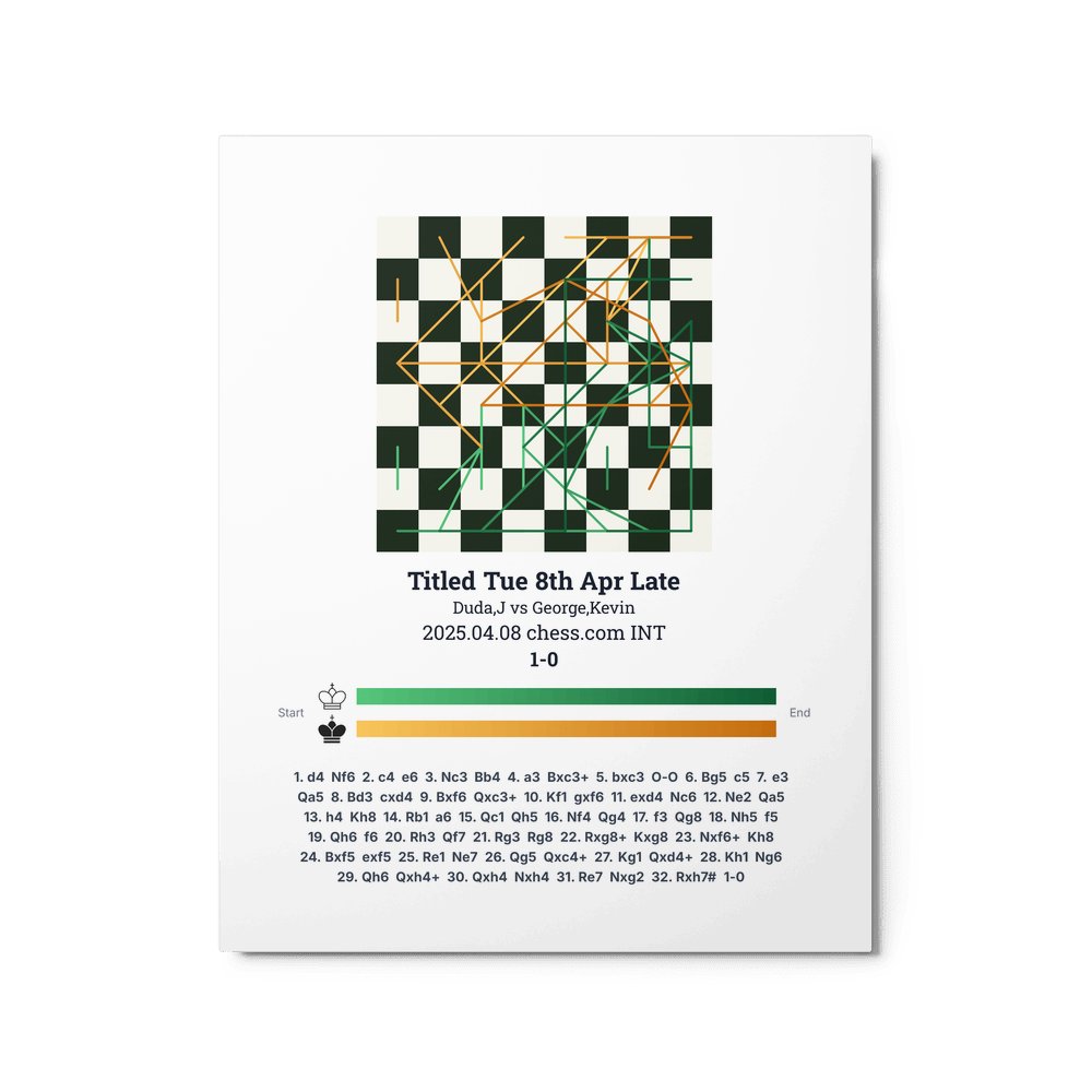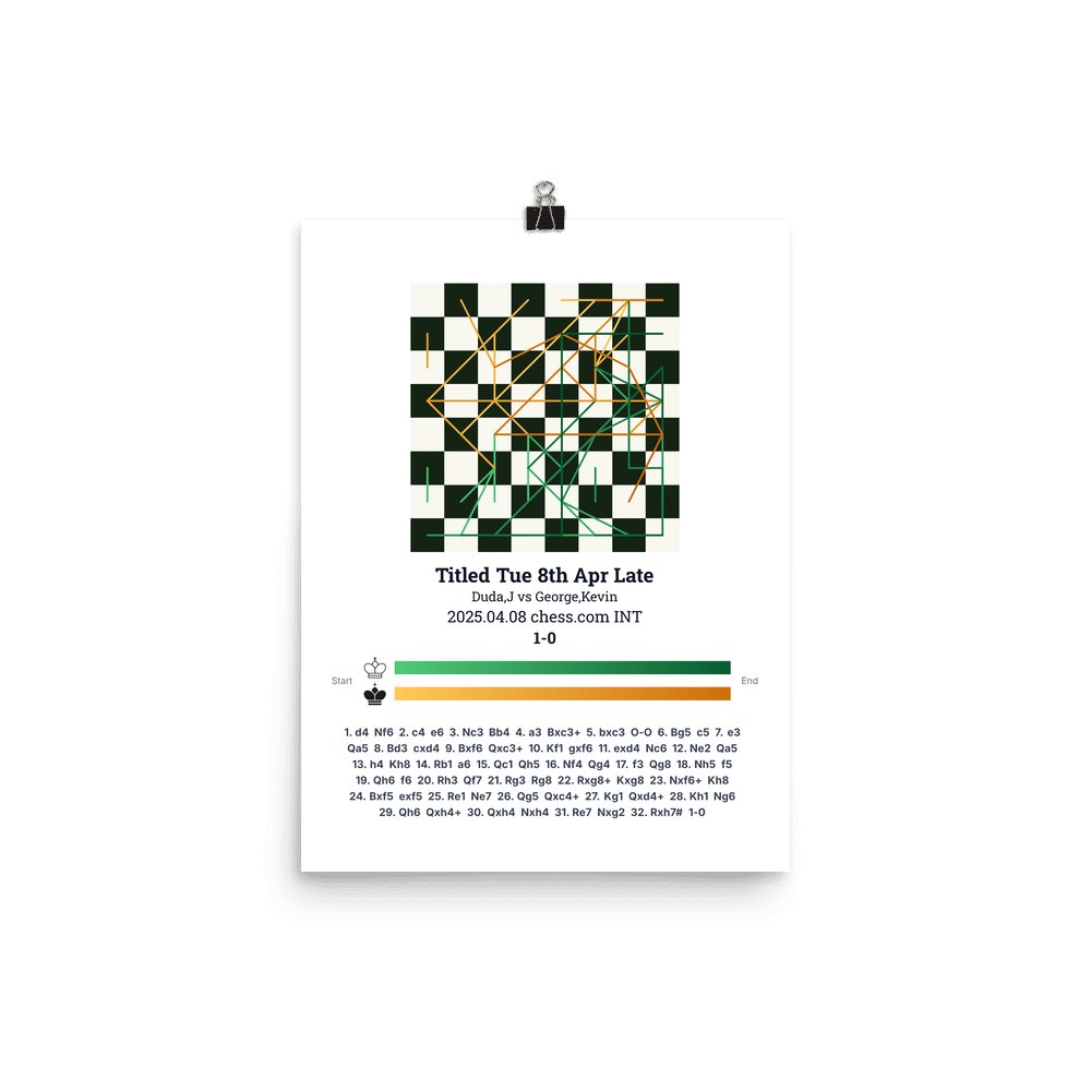 Museum-quality poster on thick, durable matte paper. A sharp, clean look for any chess visualisation.
