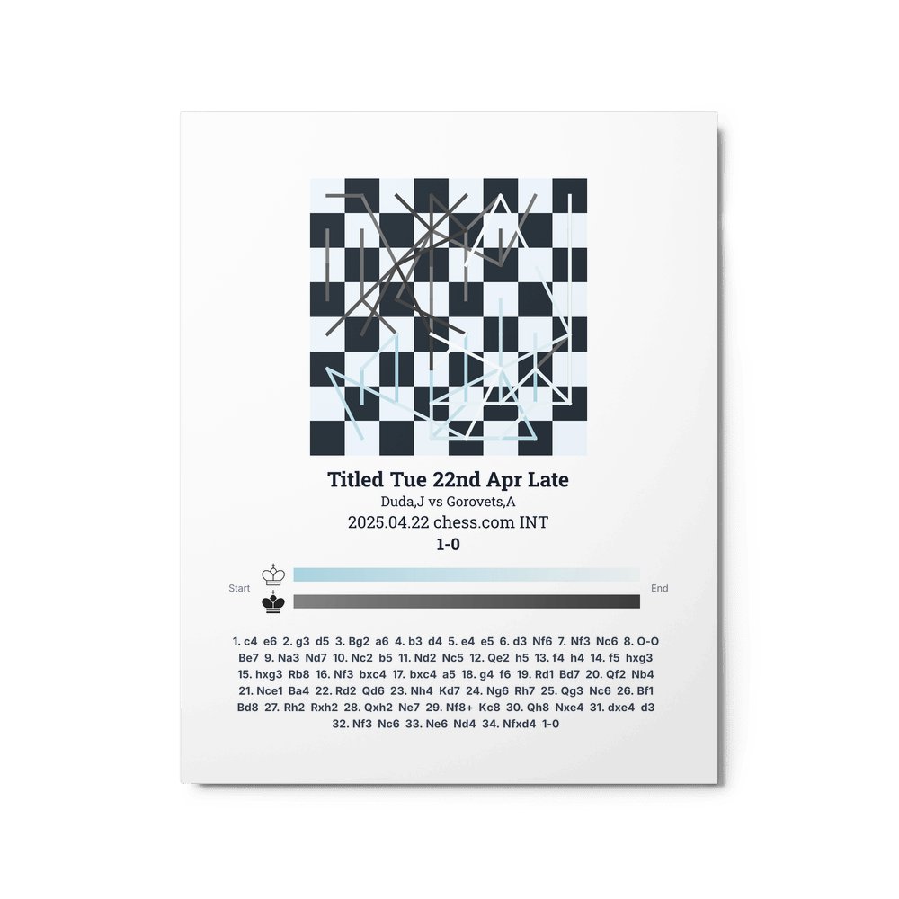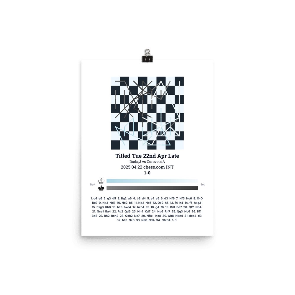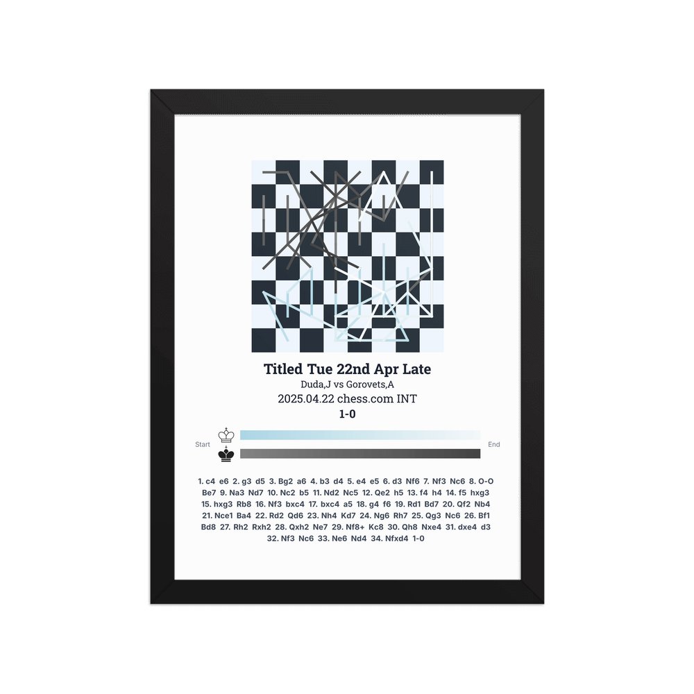 Museum-quality poster on thick, durable matte paper. A sharp, clean look for any chess visualisation.