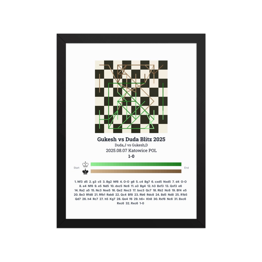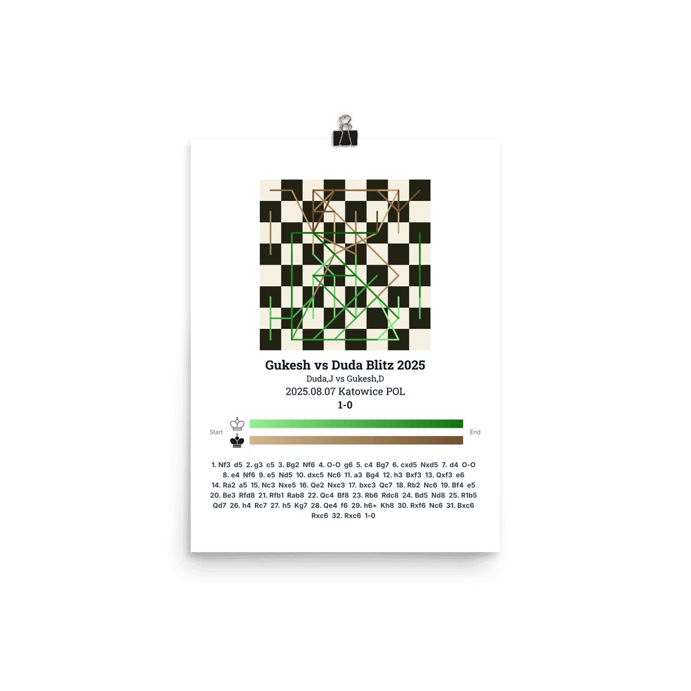 Museum-quality poster on thick, durable matte paper. A sharp, clean look for any chess visualisation.