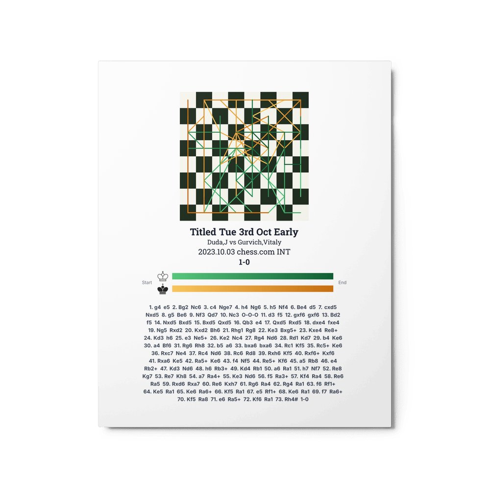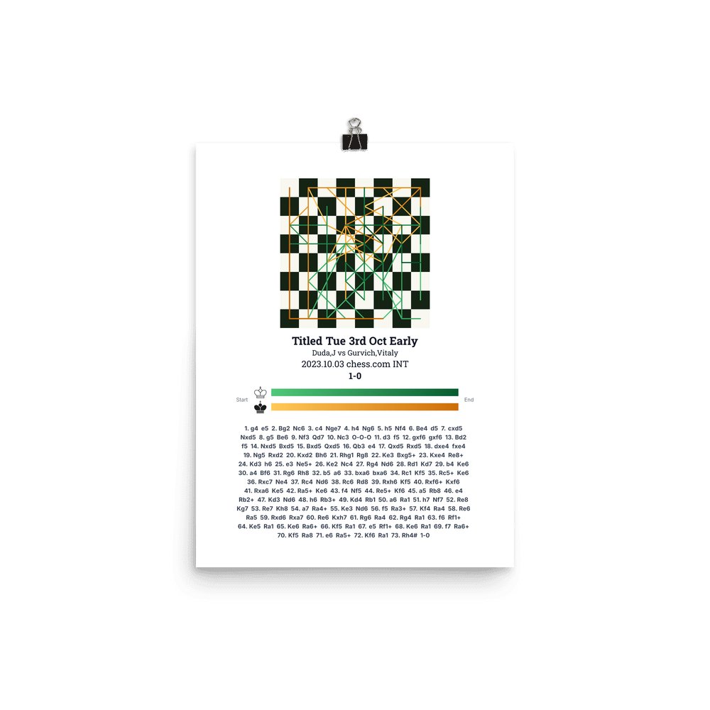 Museum-quality poster on thick, durable matte paper. A sharp, clean look for any chess visualisation.