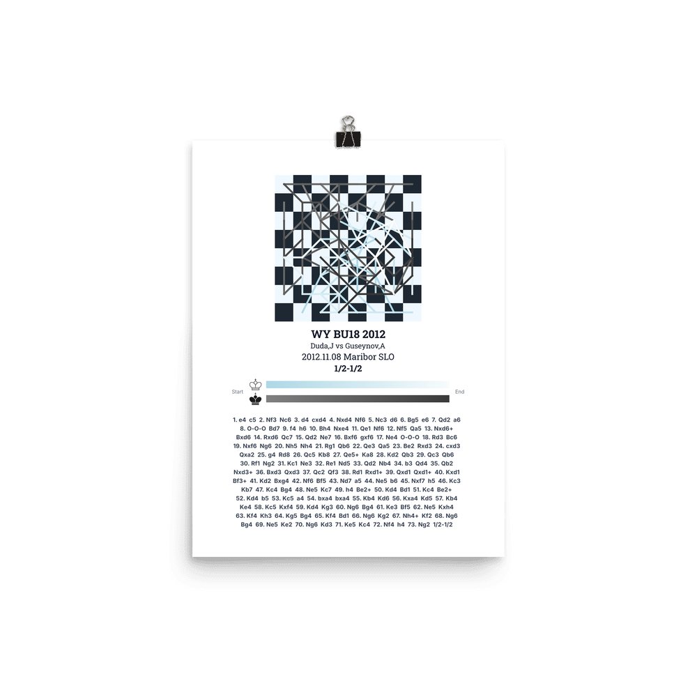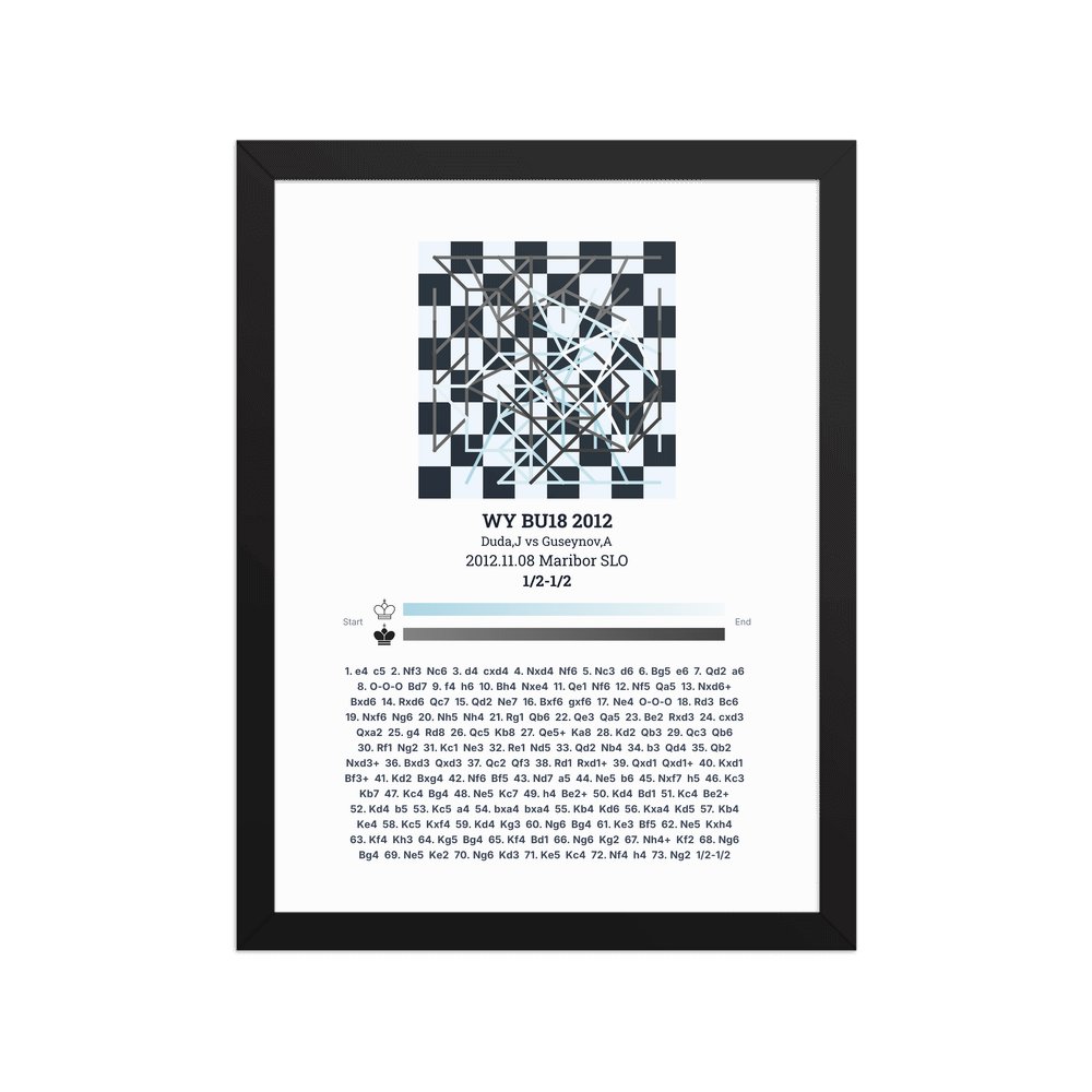 Museum-quality poster on thick, durable matte paper. A sharp, clean look for any chess visualisation.