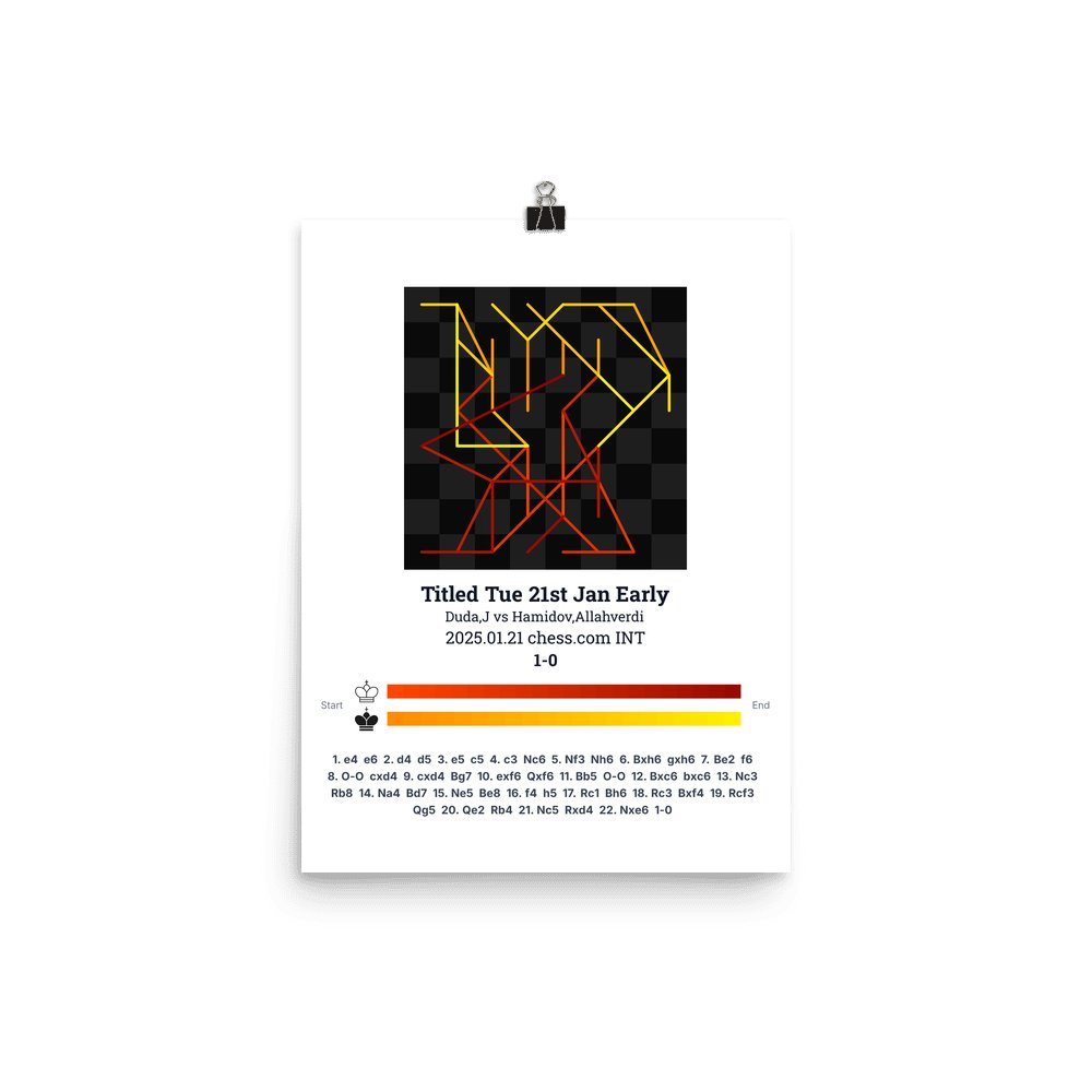 Museum-quality poster on thick, durable matte paper. A sharp, clean look for any chess visualisation.