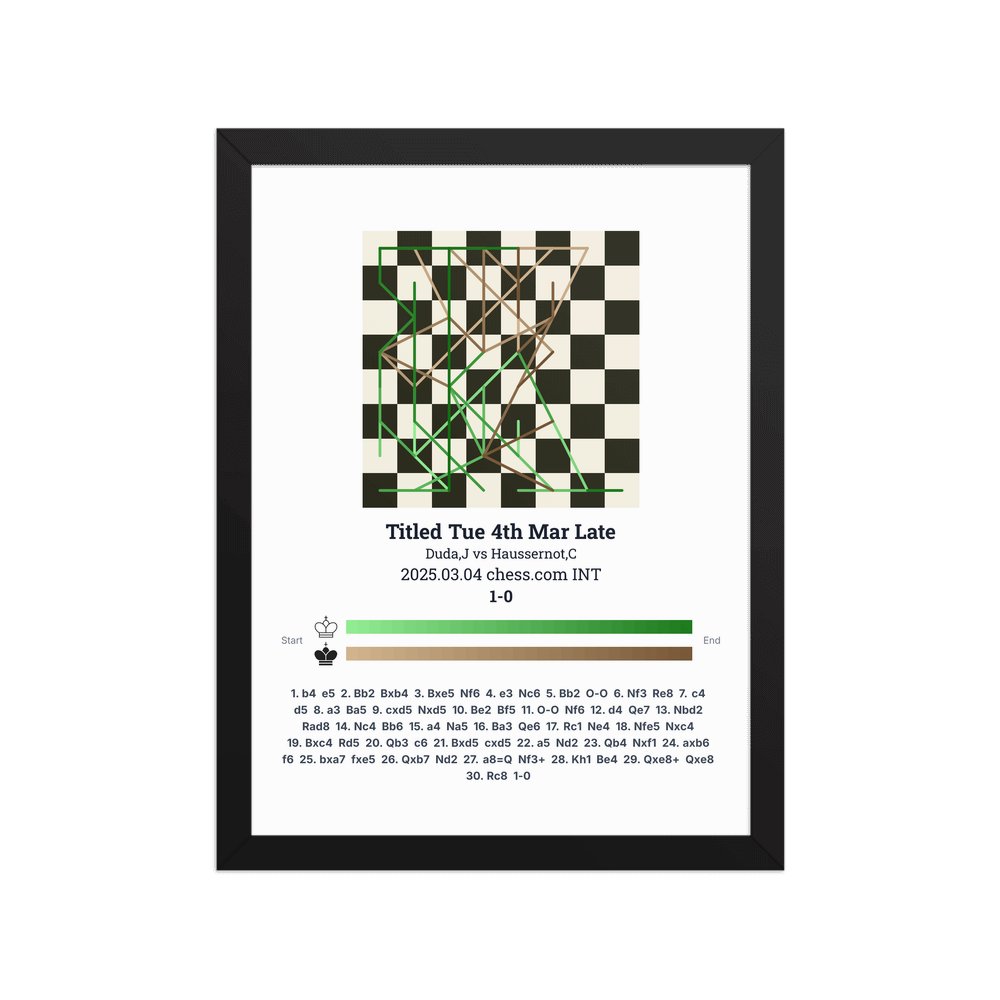 Museum-quality poster on thick, durable matte paper. A sharp, clean look for any chess visualisation.
