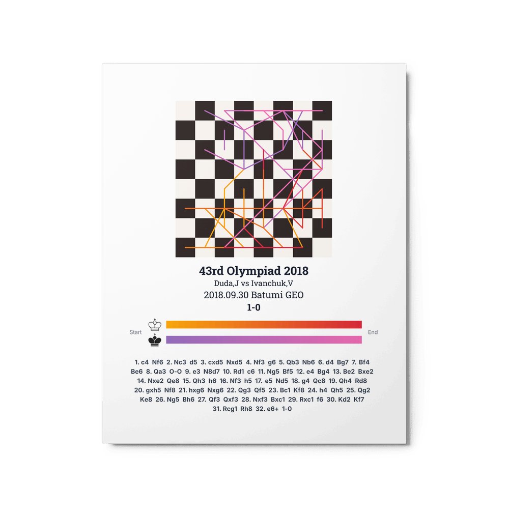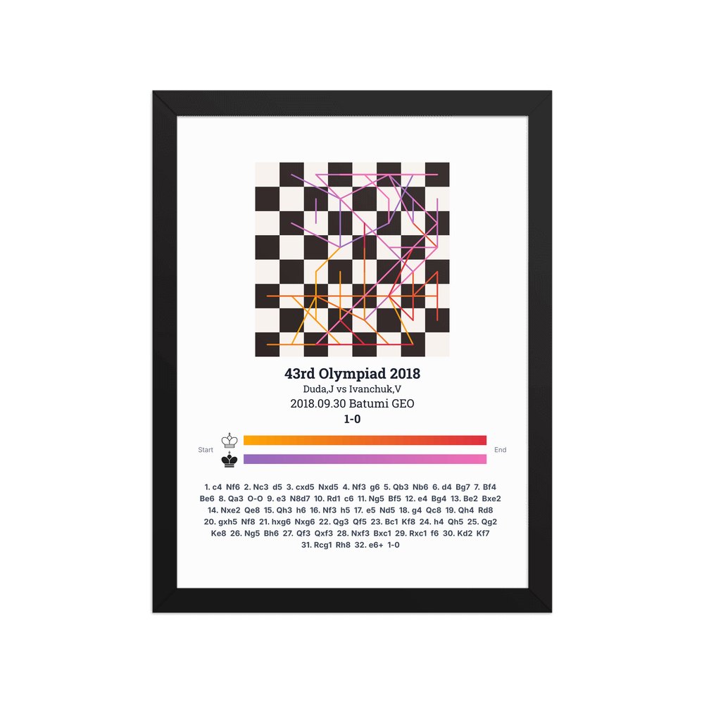 Museum-quality poster on thick, durable matte paper. A sharp, clean look for any chess visualisation.