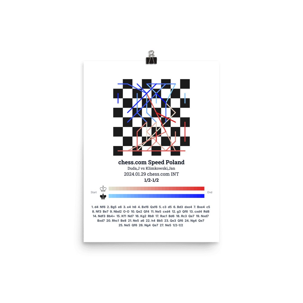 Museum-quality poster on thick, durable matte paper. A sharp, clean look for any chess visualisation.
